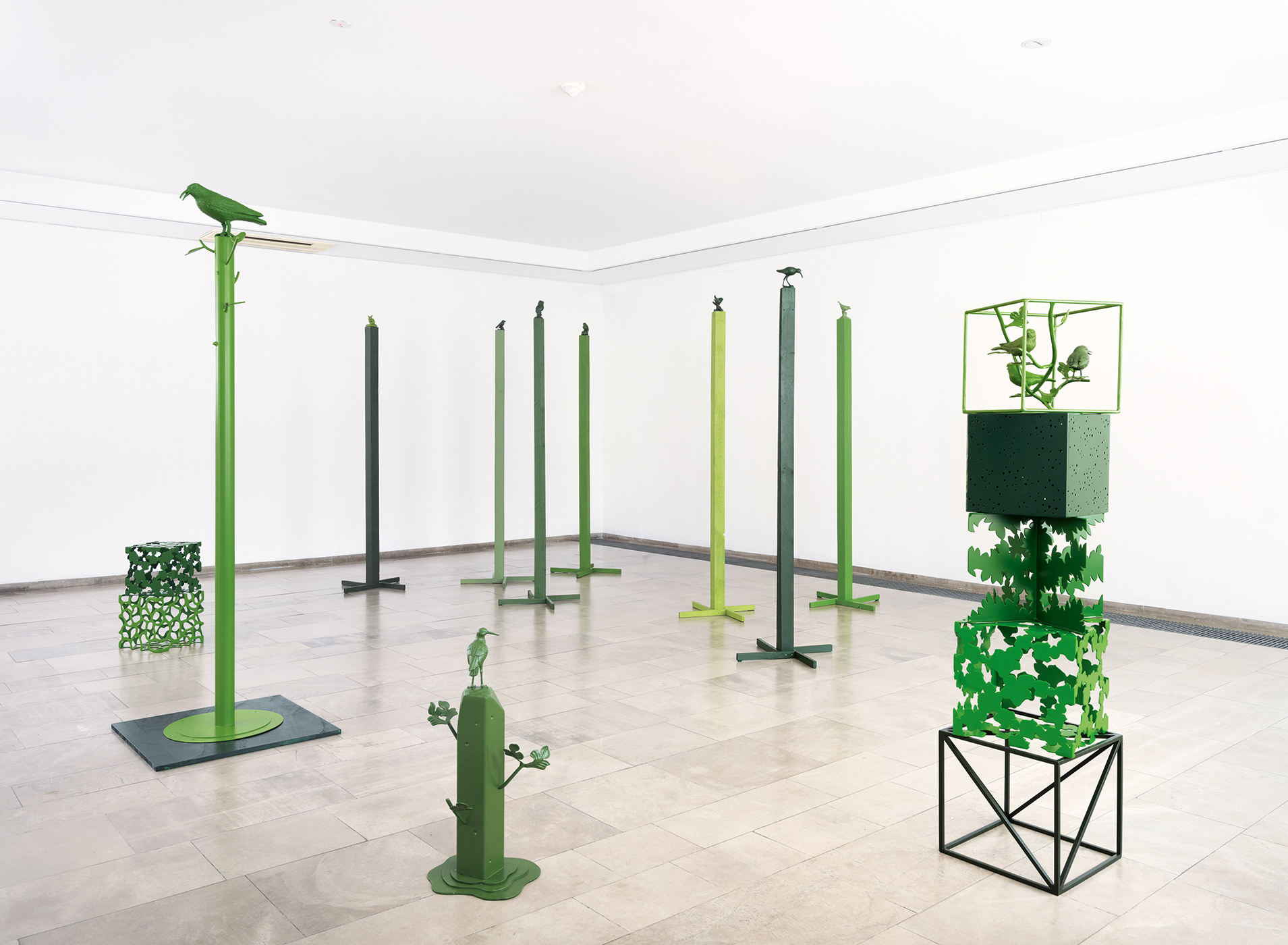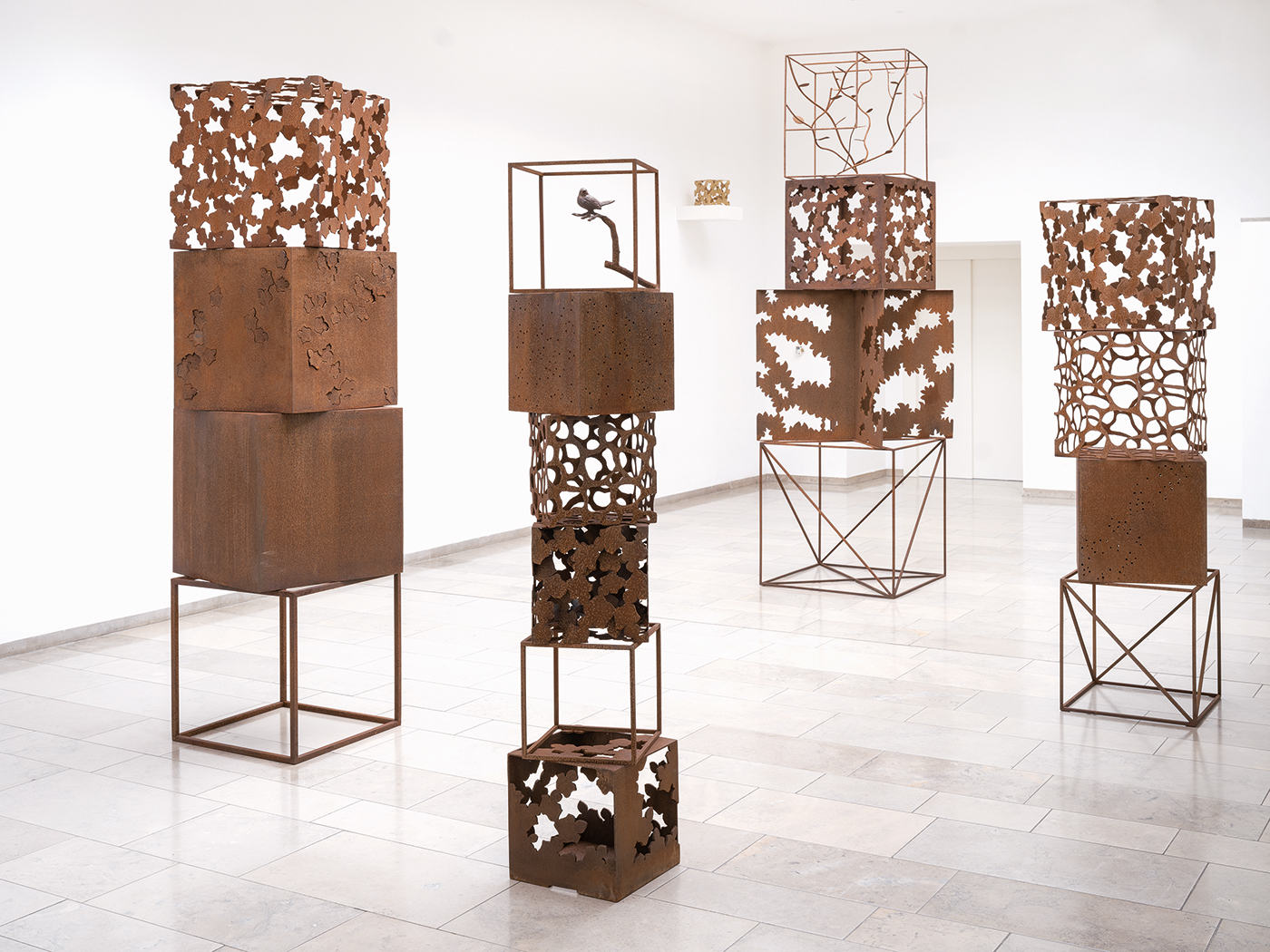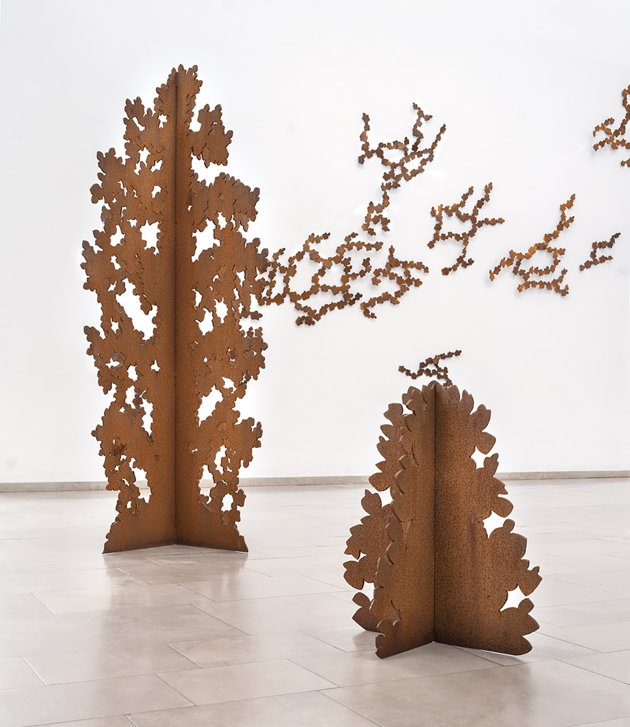 The artist captures snapshots of movement, growth and transience: meter-high Scots Pines (pines) are represented in her work as well as leaves blown about by the wind. The combination of the material with the theme of nature results in opposites such as durability and transience, heaviness and lightness.