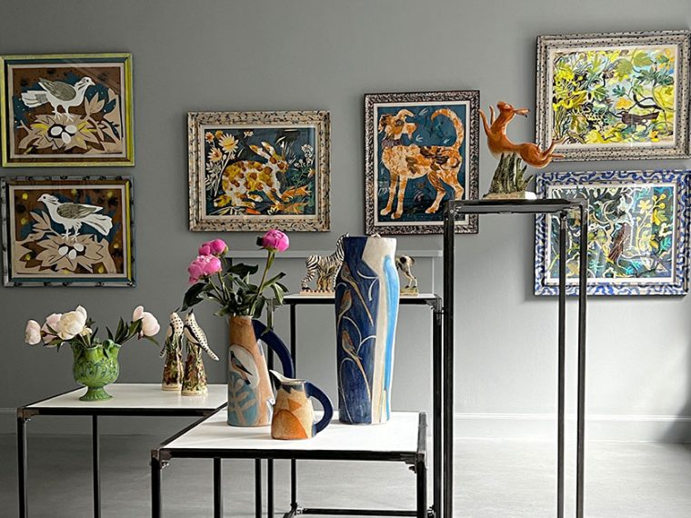 The Art of Collaboration sees the design studio and publisher St Jude’s make a welcome return to The Scottish Gallery, with an exhibition showcasing the paintings, collages and prints by a group of artists that founders Simon and Angie Lewin have worked with over the past 20 years. Simon and Angie have also curated a selection of objects by makers represented by The Gallery. These makers have often crossed paths with artists associated with St Jude’s.