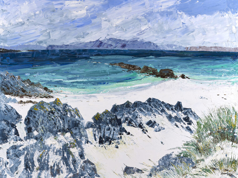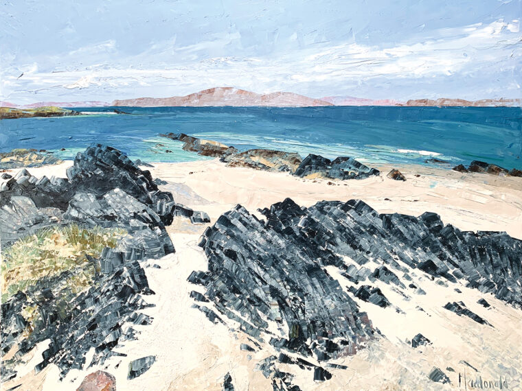 In Sea Fever we find Frances Macdonald painting her long-favoured subjects: the curve of the White Strand of the Monks and the Island of Storms on the east coast of Iona; the distinctive rocks of the North End; the extraordinary views west from Crinan; the full blooming of bluebells in the Argyll forest and a group of late autumn pictures of Brittany.
