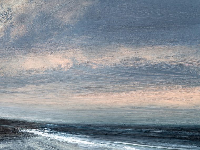 The light and shifting weather dominate my work. Isolated beaches, rugged coastlines, and wild skies often appear in my paintings, but more than that, I aim to capture the mood of Shetland. It’s not about replicating what I see. Instead, I’m always trying to convey the essence, the wildness, and the atmosphere of this place. Ruth Brownlee