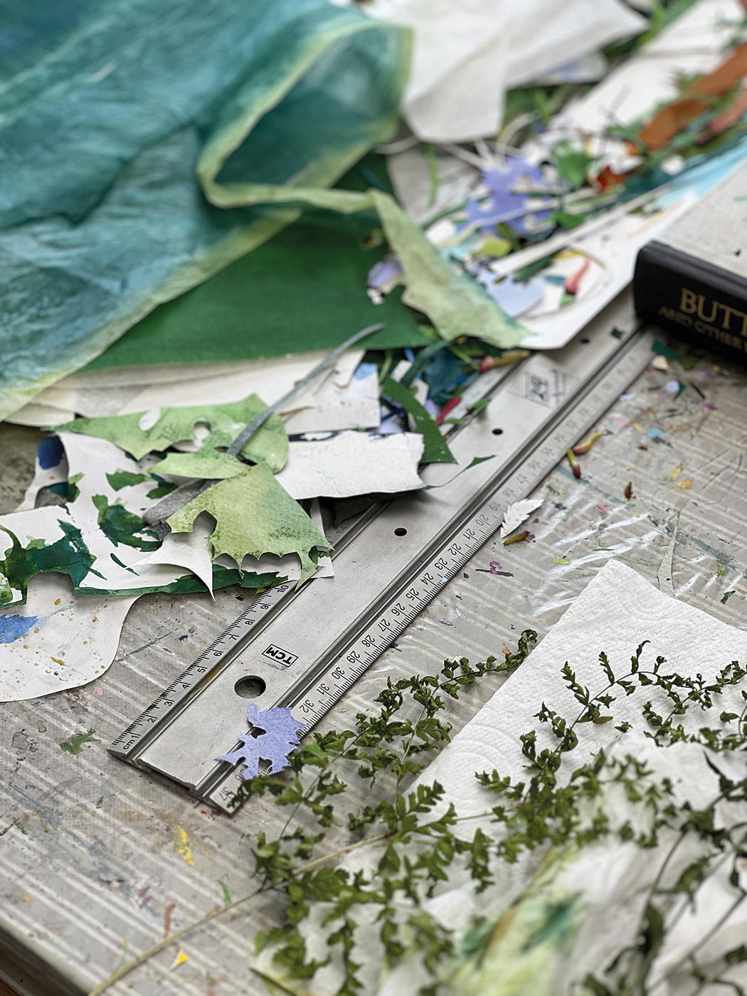 Sheila Anderson-Hardy is a painter and printmaker whose work is deeply rooted in close observation of the natural world. Drawing inspiration from the landscape around her home, she works intuitively with a range of materials, often incorporating found and seasonal elements into her practice.
