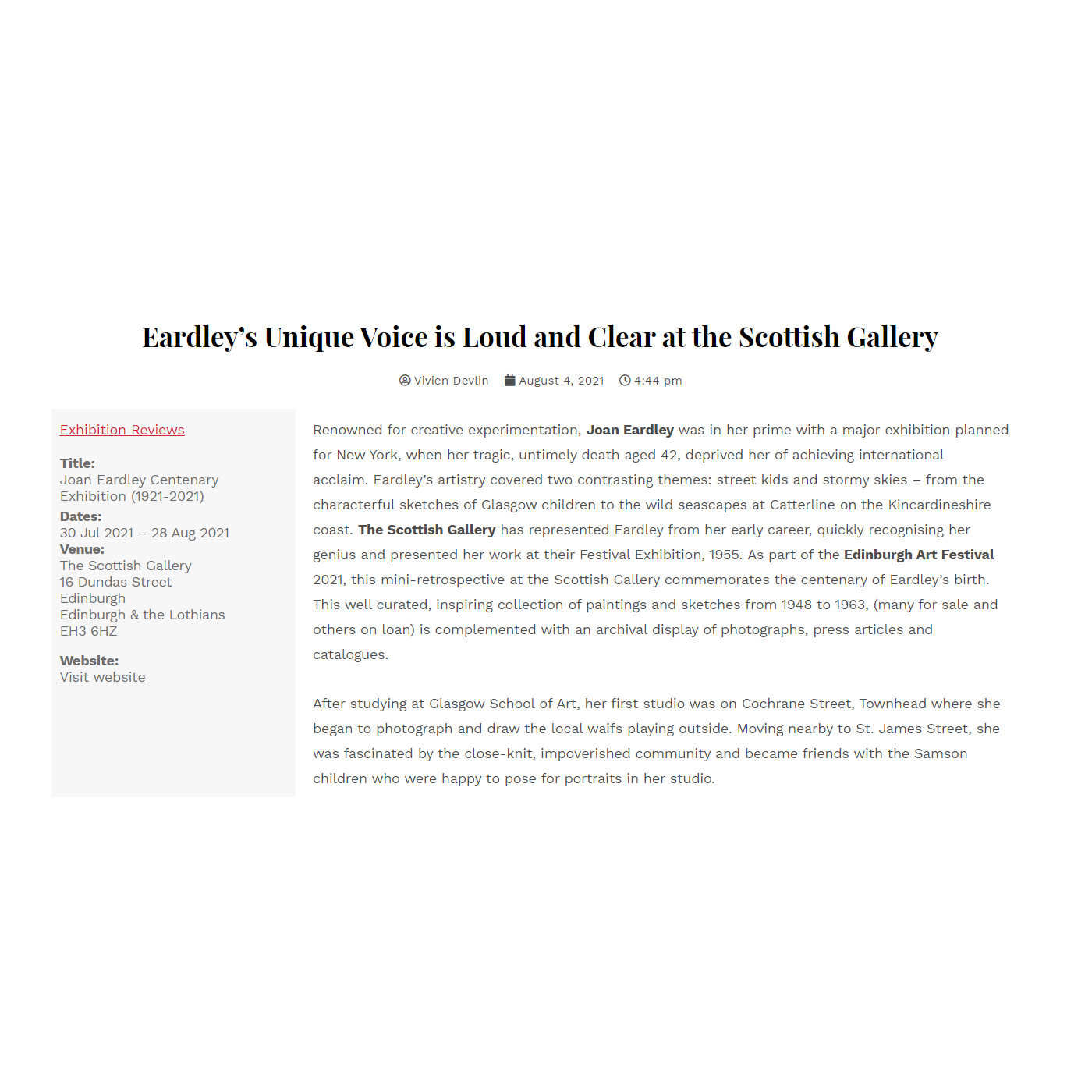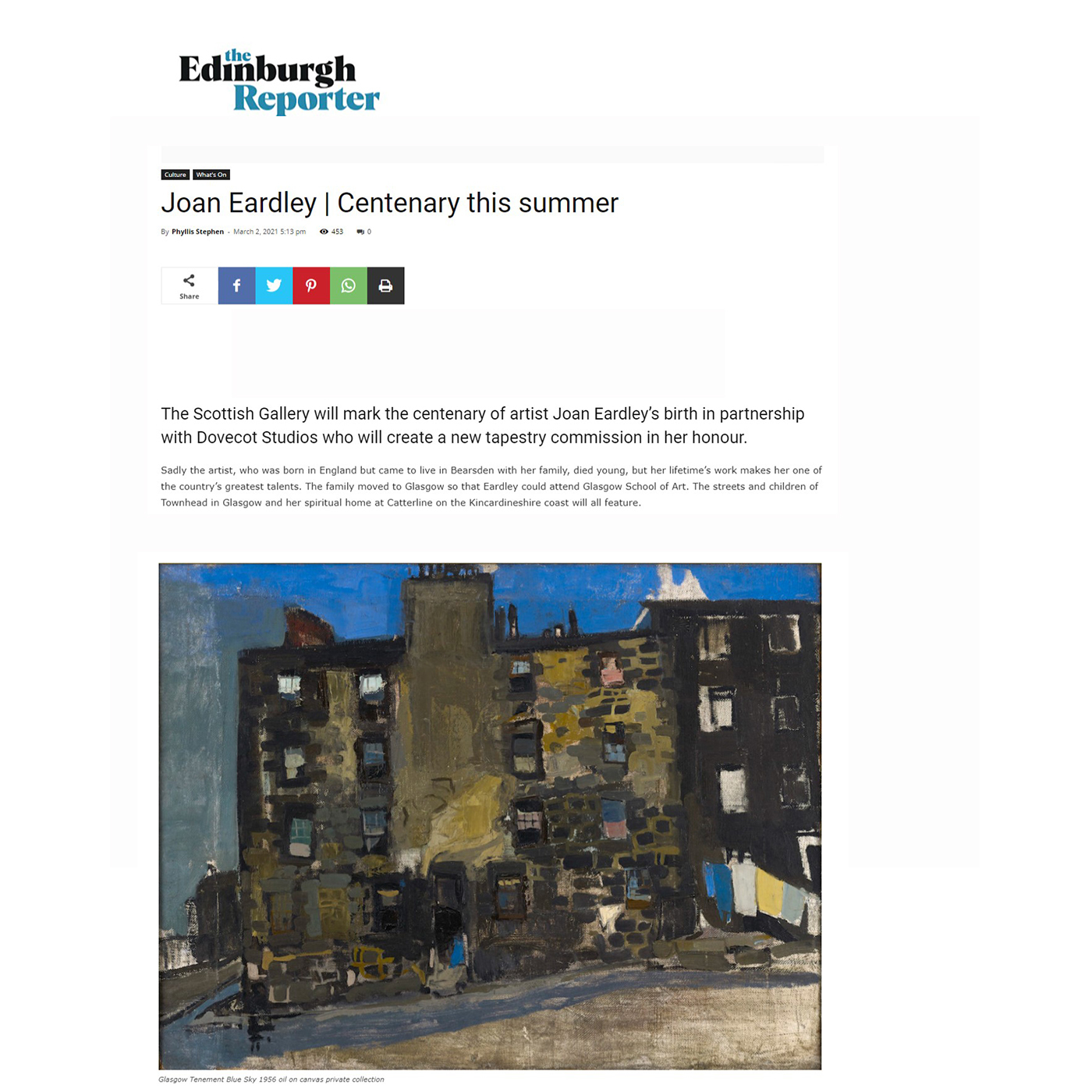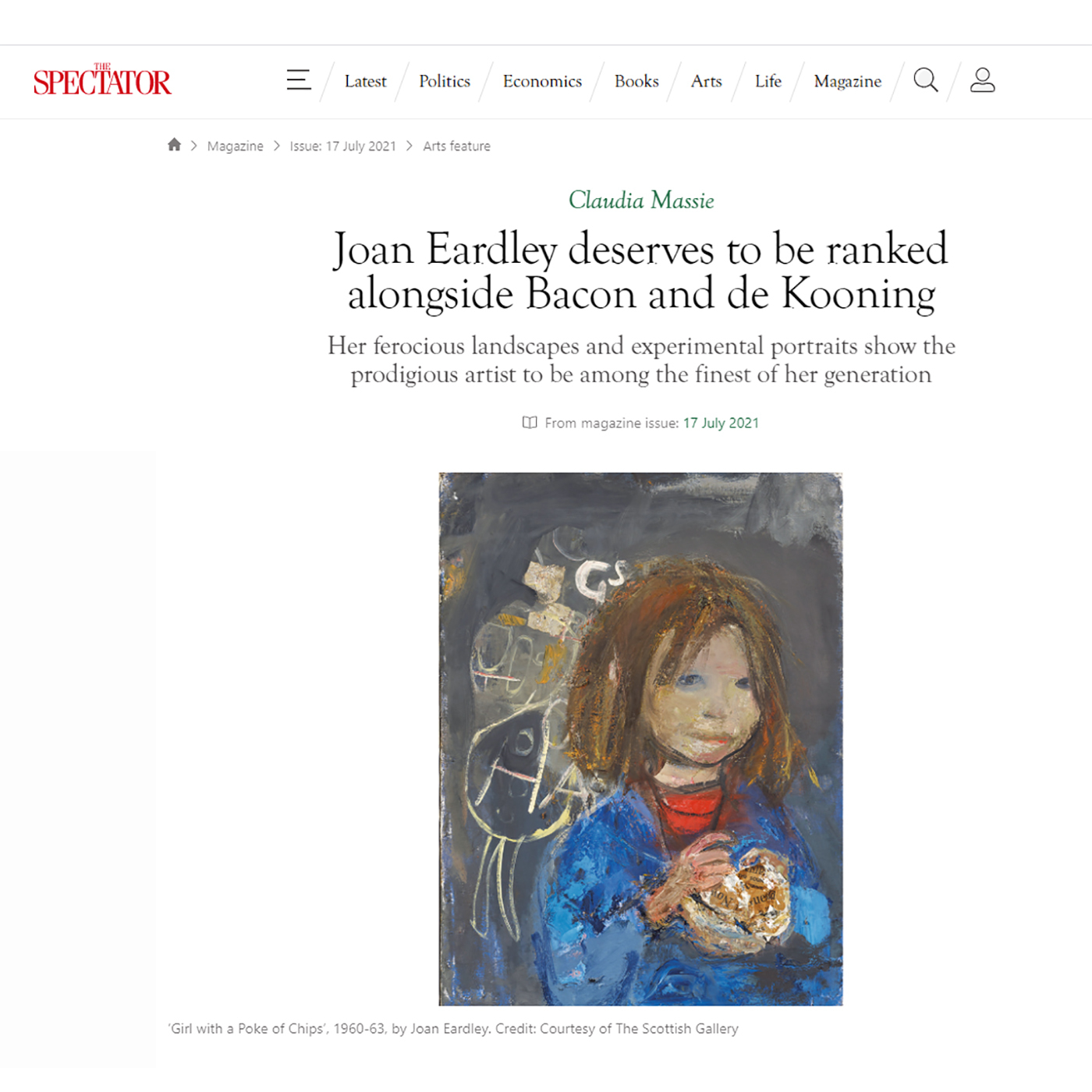 We are so pleased to share some of the coverage that Joan Eardley | Centenary has received in the press with you.