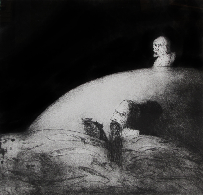 John Bellany was born in 1942 in the Scottish fishing village of Port Seton. He attended Edinburgh College of Art from 1960 to 1965. His early work in Northern European Expressionist-Realist tradition allied to personal symbolism and iconography, often drawn from his family’s seafaring past.