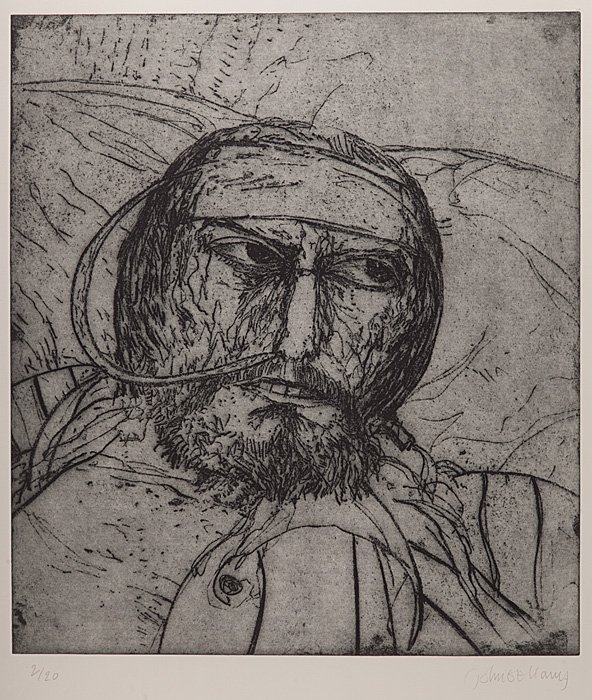 Bellany believed that art should show the realities of life and his art reflects both his personal triumphs as well as tragedies. His work is often highly challenging and at times autobiographical as epitomised by a series of brutally unflinching self portraits produced in hospital following a major operation in the 1980s.
