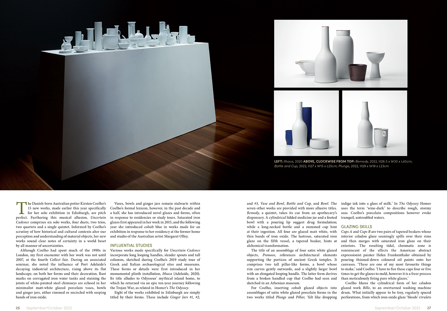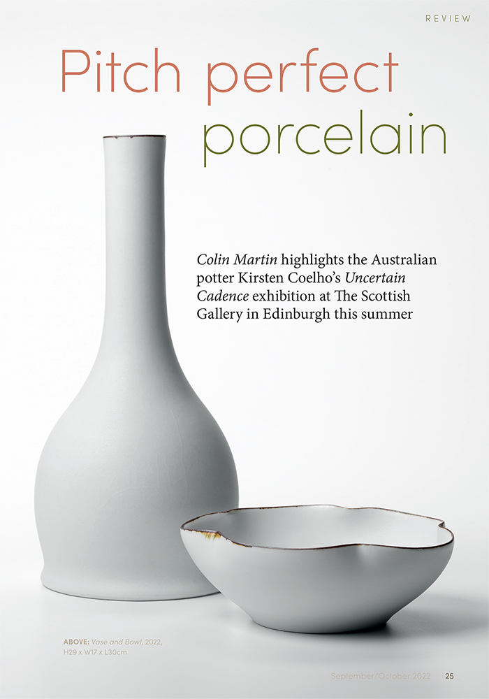 Colin Martin from Ceramic Review highlights Kirsten Coelho’s Uncertain Cadence exhibition at The Gallery, August 2022. The exhibition runs from 28 July – 27 August 2022, as part of our Festival exhibitions.