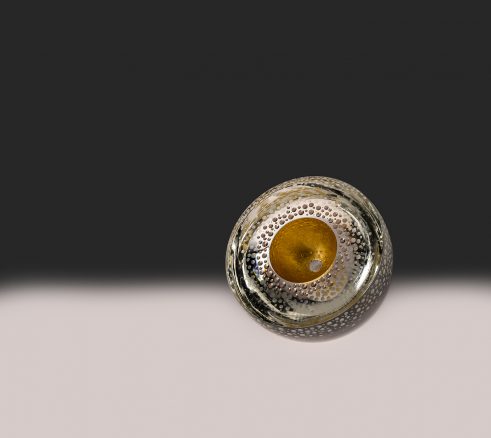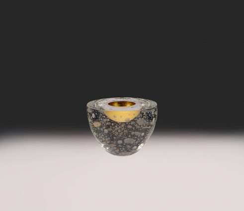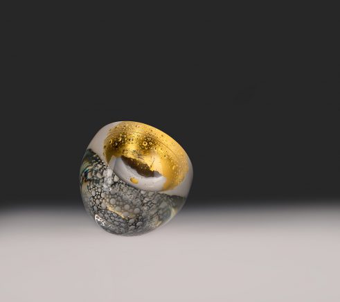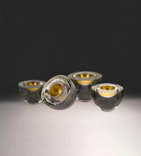mouth-blown glass; diamond wheel engraving; 24ct gold leaf