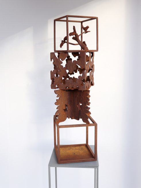 Andrea’s sculptures are hand-made from Corten steel; a weatherproof steel that forms a protective layer which stops further corrosion. They therefore have an unlimited life span and do not stain. Andrea fabricates all her sculptures herself. The patterns are first drawn onto sheet metal then hand-cut, assembled like a 3D puzzle and finally welded together. Andrea has worked on several large scale public commissions including Culzean Castle and, most recently, a sculpture commission titled ‘The Chlorophylles’ at the FANK Arts & Heritage site in Lettermore Forest on the Isle of Mull; celebrating the community effort bringing this site back to life.