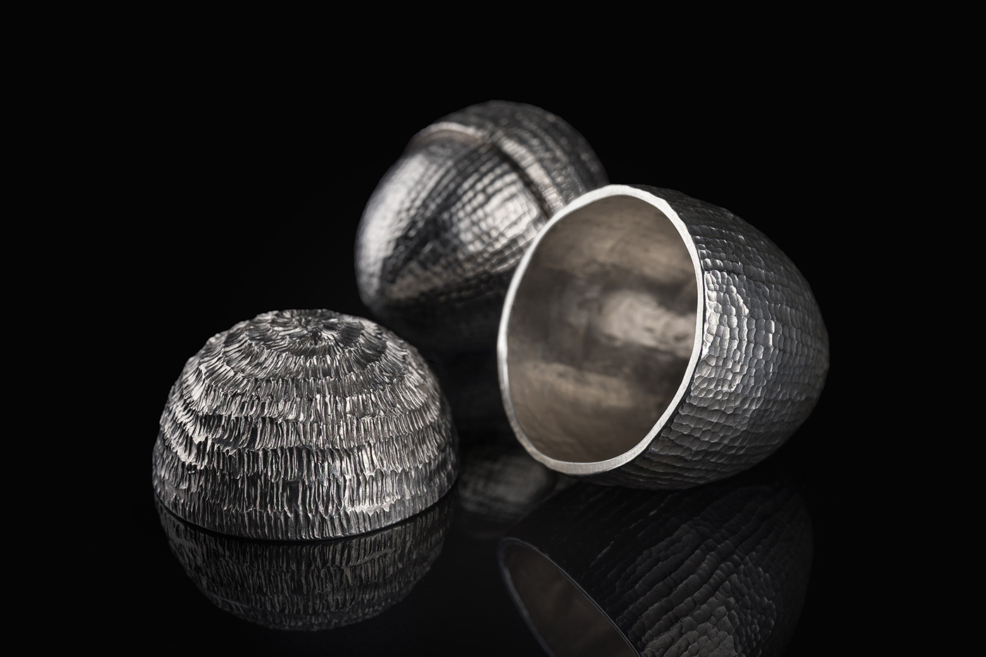 Yusuke shapes metal by hammer raising and chasing techniques and draws inspiration from the natural world. With each stroke of the hammer, he tries to evoke an expression, atmosphere and emotion.