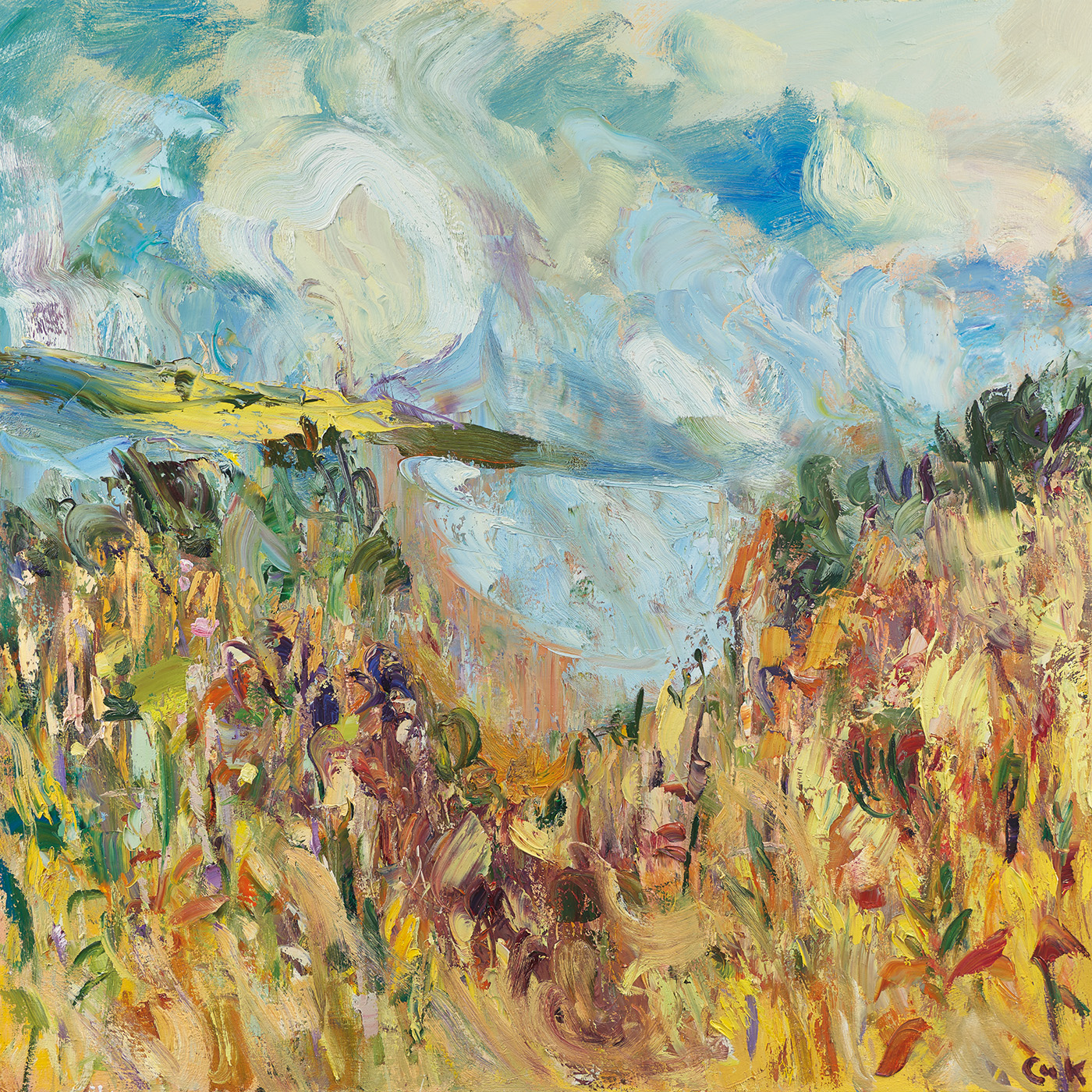In the 1990s he was already visiting Seagreens (his current home) and staying at a cottage at Benholm, two miles to the North also frequented by Alberto Morocco and Ian Eadie. Cook travelled regularly in these years to Turkey, the Balearics and significantly, at the invitation of the Everard Reed Gallery, to Southern Africa for three months in 1997. He was able to secure the tenancy at Seagreens shortly after his return and eventually bought it in 2004. This sense of belonging is now deeply embedded; he can see the seasons change and paint the whole calendar; the daffodils of Spring, wild flowers of Summer, the Autumn skies and bleak drama of Winter are all on show: immediate, raw and compelling.