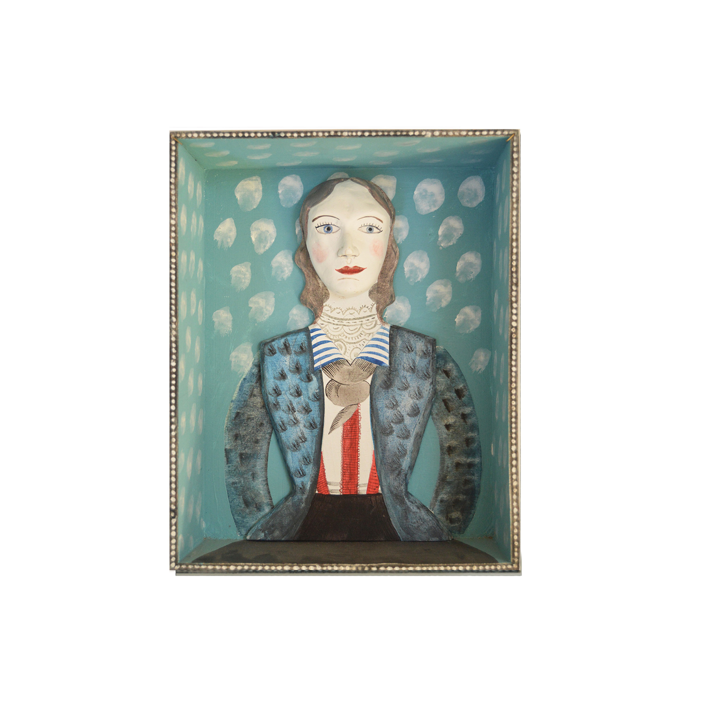 Rachel Larkins is a designer maker whose practice has focussed on creating jewellery with a strong sense of narrative and a nod to the tradition of miniatures. Larkins works primarily in resin, brass and wood, often encapsulating imaginary scenes and figures which are hand modelled and painted. Based in the village of Sopley, Larkins’s influences range from the surrounding rural landscape and seasonal folklore to magical realism in literature and painting.