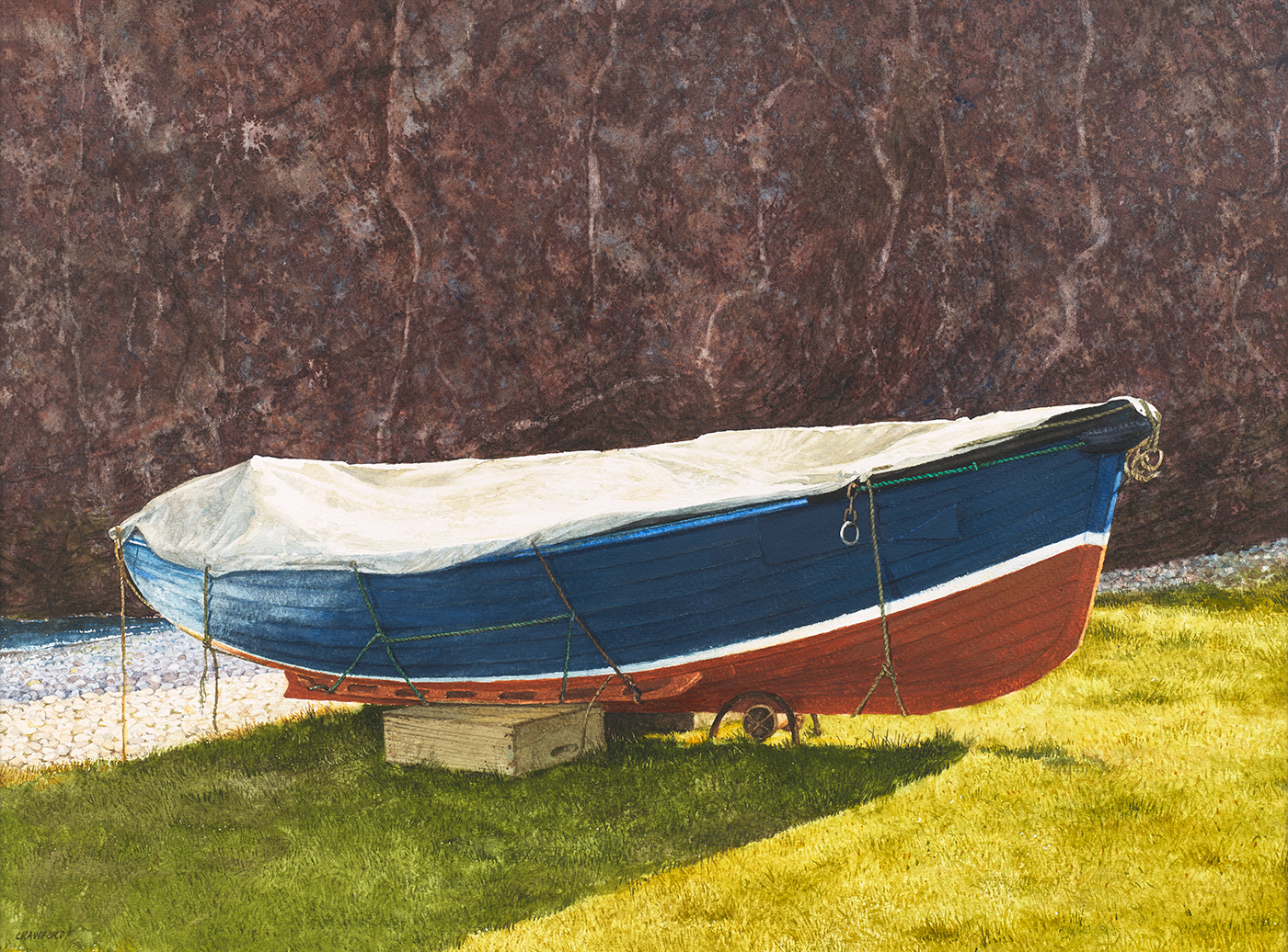 Born near Fraserburgh in Aberdeenshire, John Gardiner Crawford attended Gray’s School of Art in Aberdeen (1959-64). Winner of many awards. Shows with us in Scotland, in London and also highly successfully in Canada. Work characterised by an almost supra-realist clarity of detail and light. Subject matter concentrates on the working landscape and paraphenalia of Scotland’s east coast fishing (and farming) communites often inspired by arresting and witty juxtapositions of things seen.