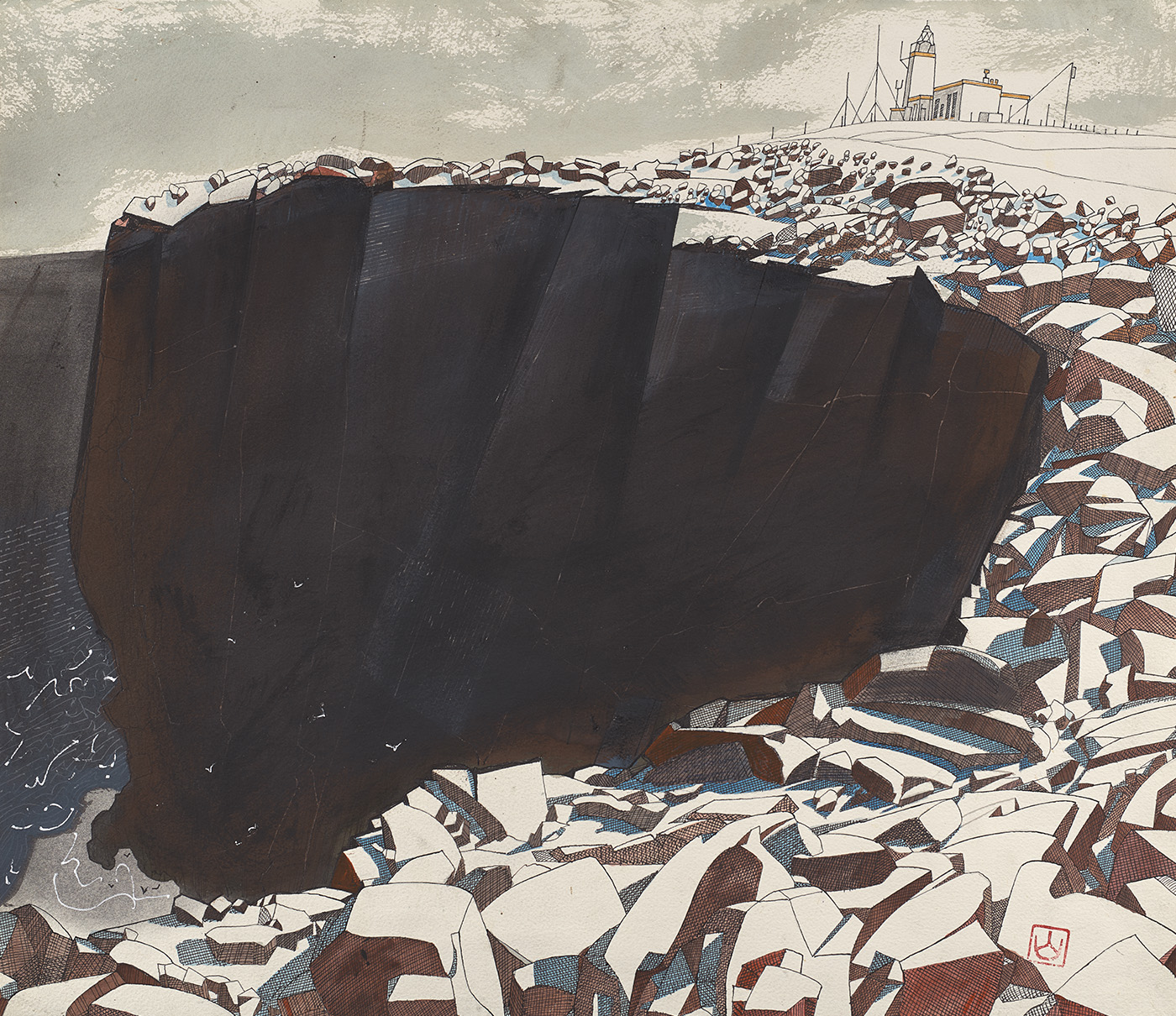Born in Greenock, Ron Sandford studied at Glasgow School of Art in the late 1950s before continuing at the Royal College of Art, London, specialising in graphics. Renowned for his highly detailed architectural drawings, he worked with leading architects, including Norman Foster, on major commissions such as the Broadgate Centre and Thames Millennium Bridge. His career later took him to Hong Kong before he settled in Yell, Shetland, in 2002 with his wife, illustrator Meilo So. There, he immersed himself in documenting the landscape, people, and maritime traditions.