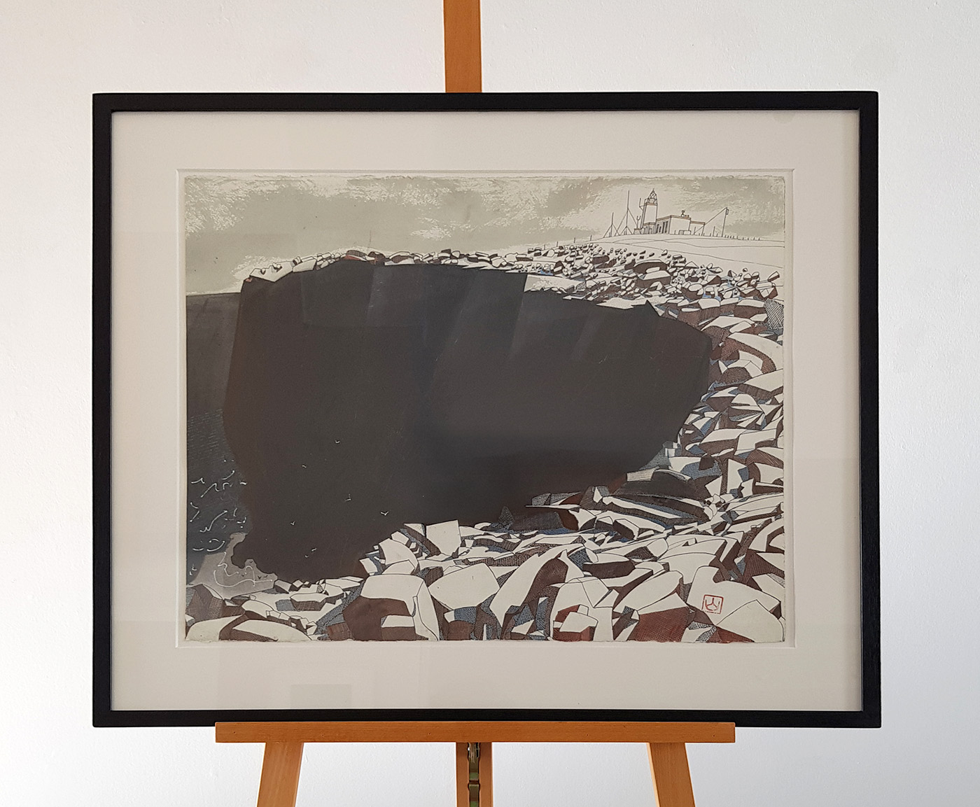 The cliffs at Eshaness, on the wild northwest coast of Shetland’s mainland, are among the most awe-inspiring in Britain, shaped by ancient volcanic activity and carved by centuries of relentless Atlantic weather. Towering sea stacks, blowholes, and jagged outcrops form a landscape that is both elemental and sublime. In this work, Ron Sandford, who has walked the length and breadth of Shetland, captures the magnificence of Eshaness with the insight and sensitivity that only someone deeply embedded in the place could achieve. His familiarity with the terrain, weather, and light imbues the scene with quiet authority and lived experience. The Eshaness Lighthouse, poised on the edge of this raw landscape, stands as a symbol of endurance, yet not diminished by nature’s grandeur.