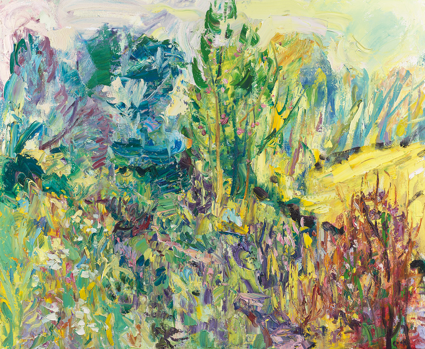 In the 1990s he was already visiting Seagreens (his current home) and staying at a cottage at Benholm, two miles to the North also frequented by Alberto Morocco and Ian Eadie. Cook travelled regularly in these years to Turkey, the Balearics and significantly, at the invitation of the Everard Reed Gallery, to Southern Africa for three months in 1997. He was able to secure the tenancy at Seagreens shortly after his return and eventually bought it in 2004. This sense of belonging is now deeply embedded; he can see the seasons change and paint the whole calendar; the daffodils of Spring, wild flowers of Summer, the Autumn skies and bleak drama of Winter are all on show: immediate, raw and compelling.