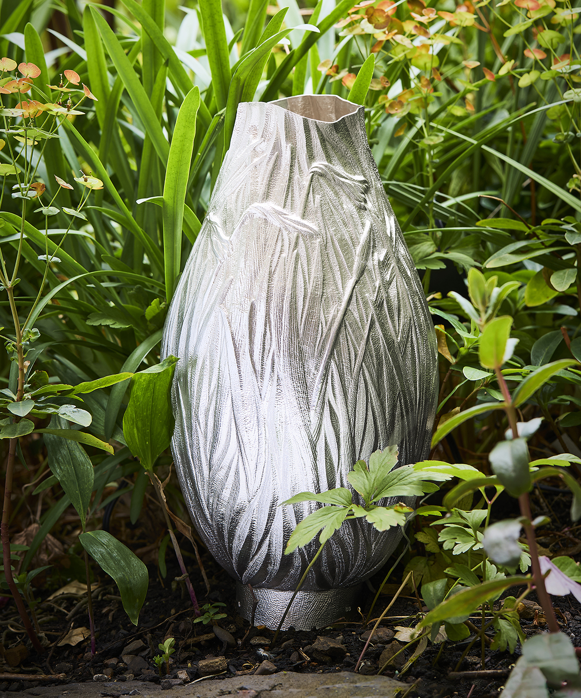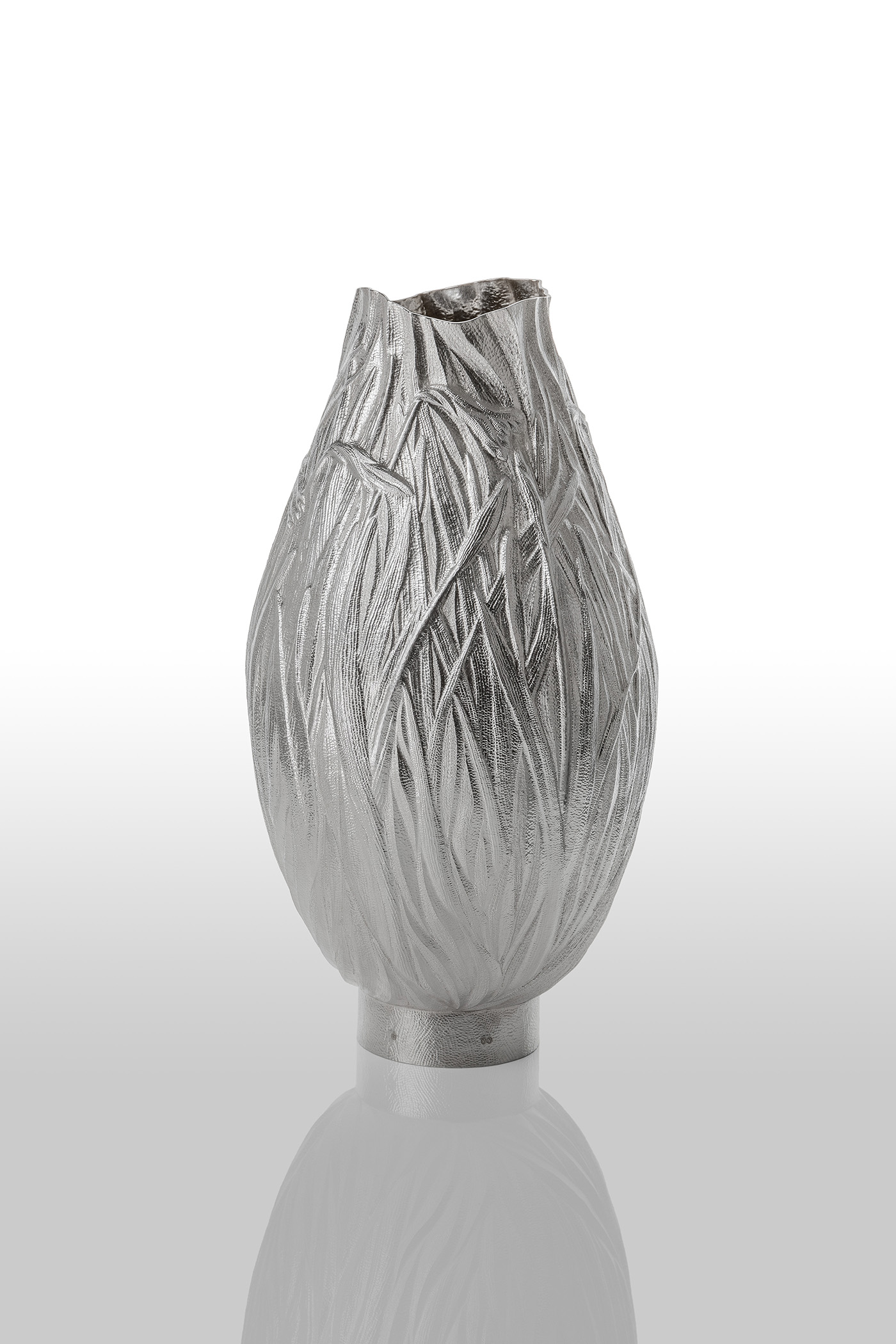 Yusuke shapes metal by hammer raising and chasing techniques and draws inspiration from the natural world. With each stroke of the hammer, he tries to evoke an expression, atmosphere and emotion.