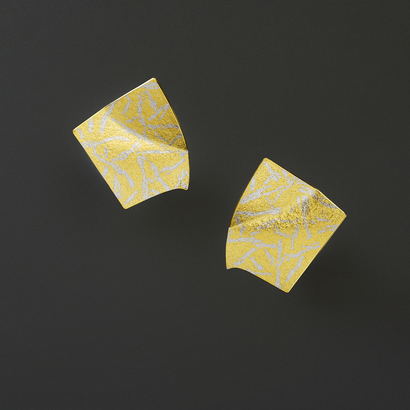 Jacqueline Mina’s technical brilliance, allied with her strong artistic curiosity has resulted in a range of sensuous, understated work, which has a rare aesthetic presence in the field of contemporary gold jewellery. Her superb technical accomplishment in manipulating precious metals is combined with a fine, painterly eye. Sources of inspiration include the Venetian Palazzo Fortuny with its textile drapes; featuring devoré velvet with their etched patterns.