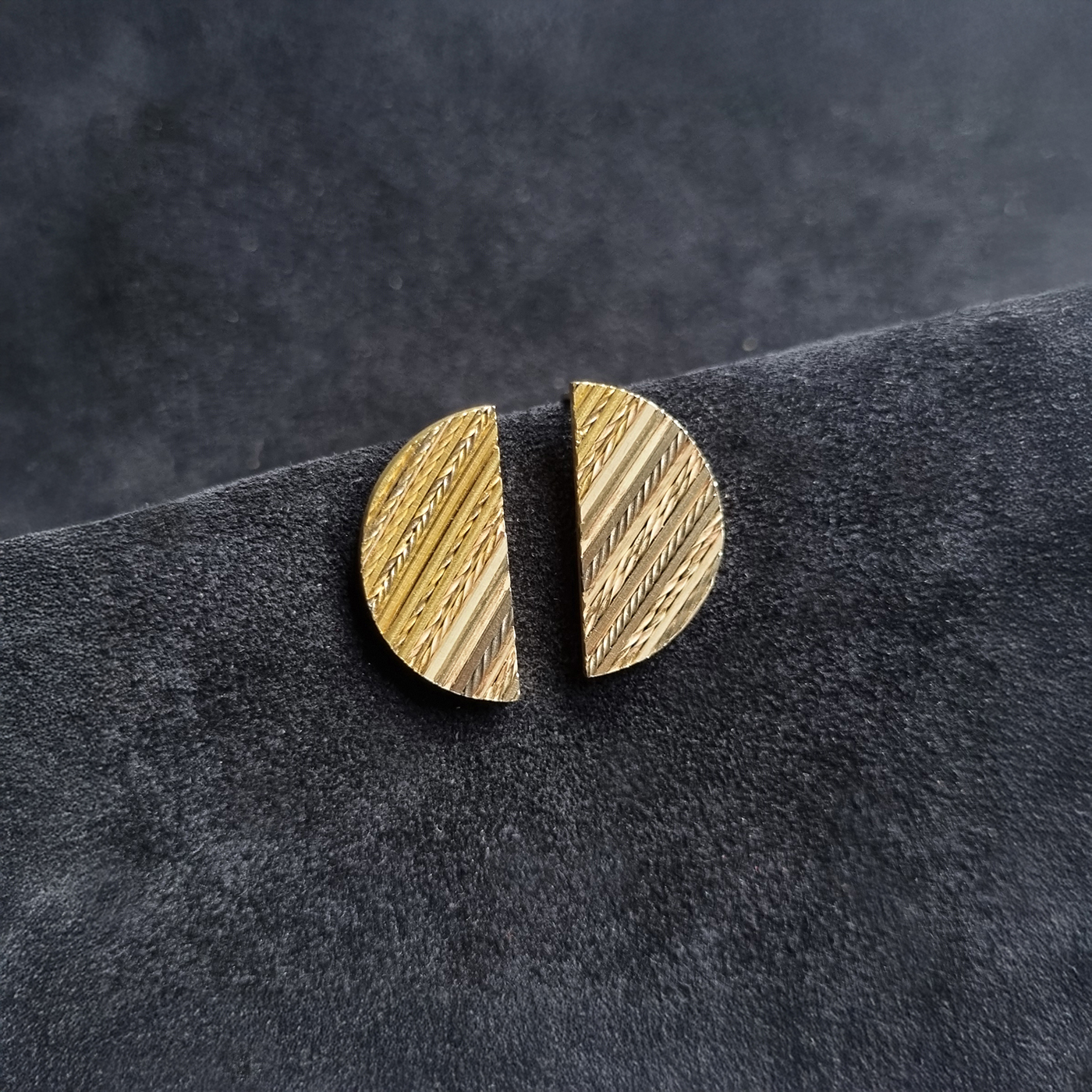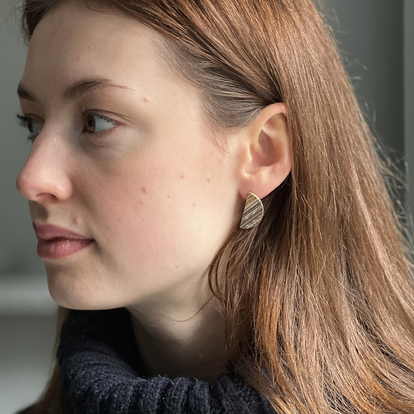 His interest in illusion and the mesmerizing visual effects of ‘Optical Art’ are cleverly adapted into his jewellery designs. By incorporating these principals, his aim is to create striking, yet delicately shaped pieces which appear to shift and change as the eye moves across them.