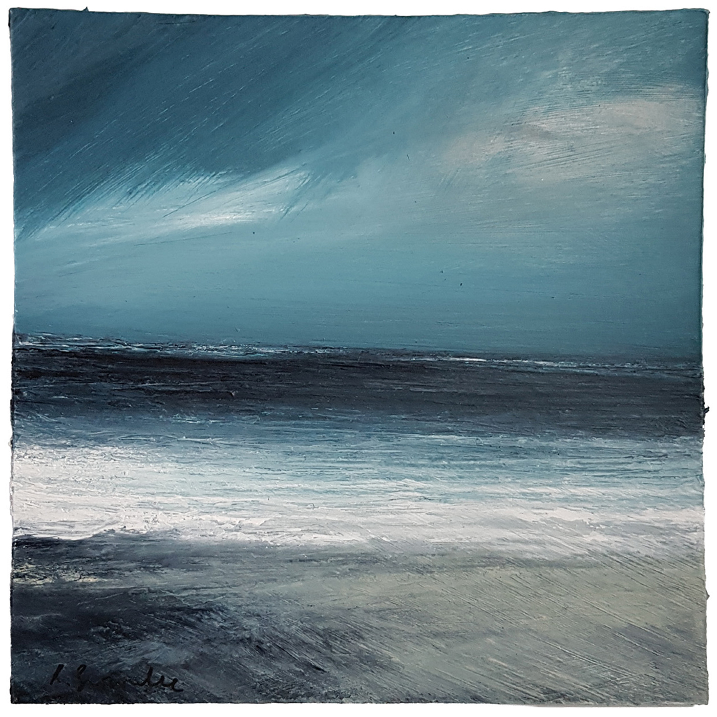 Having lived by the sea since visiting Shetland to teach a painting workshop 24 years ago, my work continues to be inspired by this archipelago in the North Sea. Shetland is a rugged environment with an intense visual drama of constant changing elements. As I love walking and walk whenever I can; I watch the weather, and read the mood of the sea which filters into my studio practice. Capturing the intense atmosphere of this wild place is more important to me than trying to include the details of the coastal landscape.