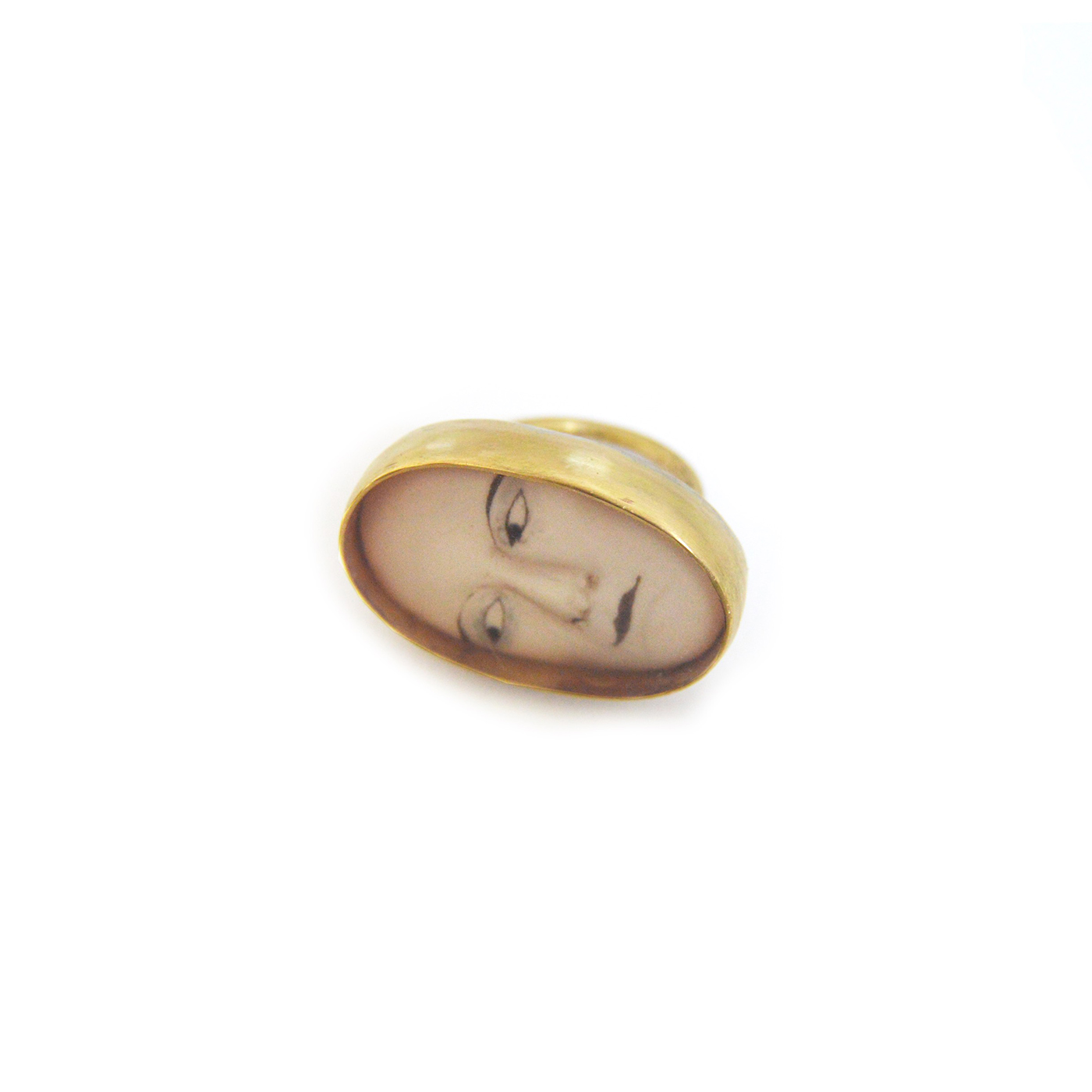 Rachel Larkins is a designer maker whose practice has focussed on creating jewellery with a strong sense of narrative and a nod to the tradition of miniatures. Larkins works primarily in resin, brass and wood, often encapsulating imaginary scenes and figures which are hand modelled and painted. Based in the village of Sopley, Larkins’s influences range from the surrounding rural landscape and seasonal folklore to magical realism in literature and painting.