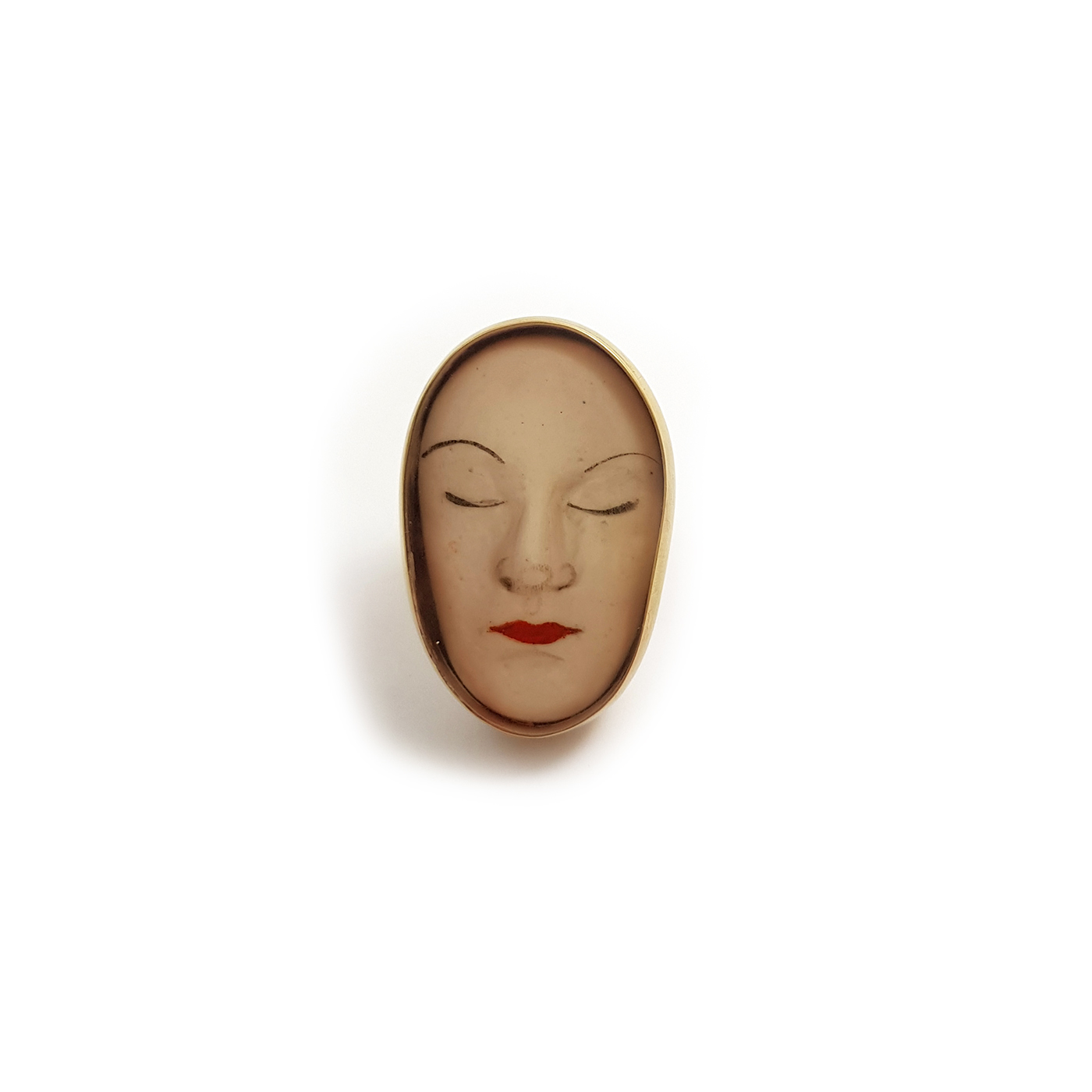 Rachel Larkins is a designer maker whose practice has focussed on creating jewellery with a strong sense of narrative and a nod to the tradition of miniatures. Larkins works primarily in resin, brass and wood, often encapsulating imaginary scenes and figures which are hand modelled and painted. Based in the village of Sopley, Larkins’s influences range from the surrounding rural landscape and seasonal folklore to magical realism in literature and painting.