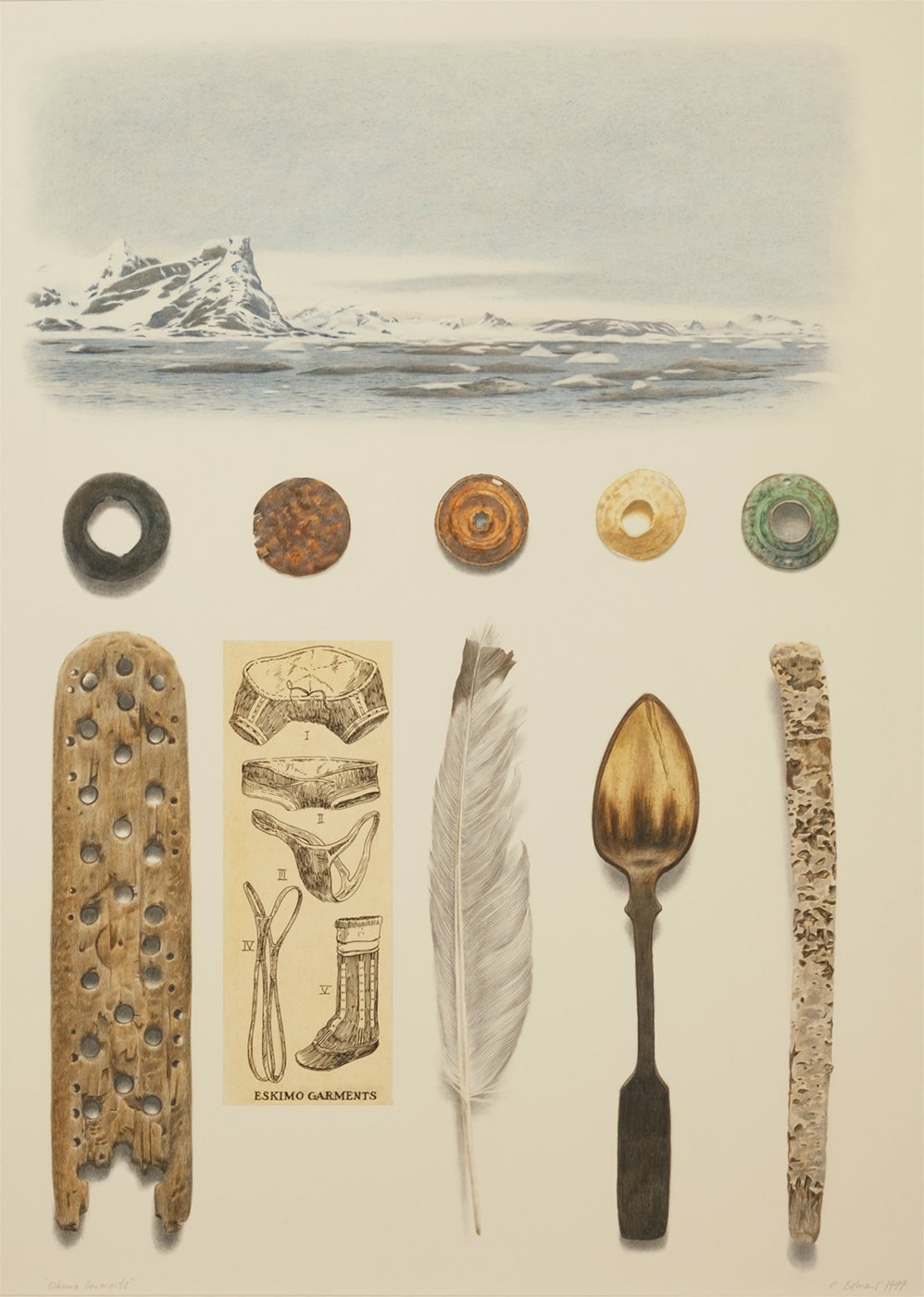 Behrens’s practice inhabits a fictional world called Naboland, a mythical place of snow and ice. For over forty years, the artist has examined this world through the lens of a real history of discovery, with the artist adopting the role as explorer to create an archive of drawings, paintings, prints and installations which record the found objects and landscapes of Naboland. 2025 will mark the 50th anniversary of Naboland.