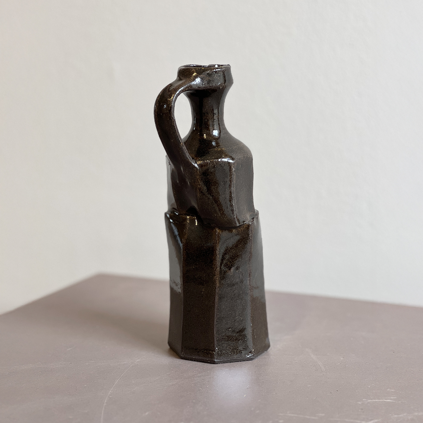 “My practice centres on using the potter’s wheel as a tool for sculptural exploration—faceting, cutting, and contorting forms to create distinctive pieces that retain visible traces of their making. This approach brings a sense of movement and raw energy to each object.