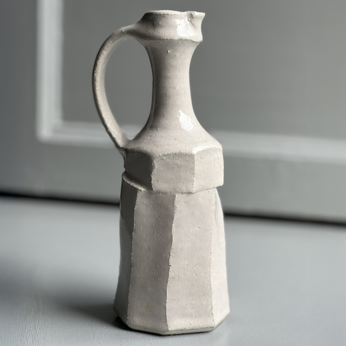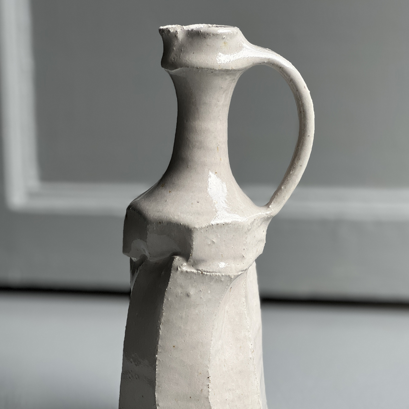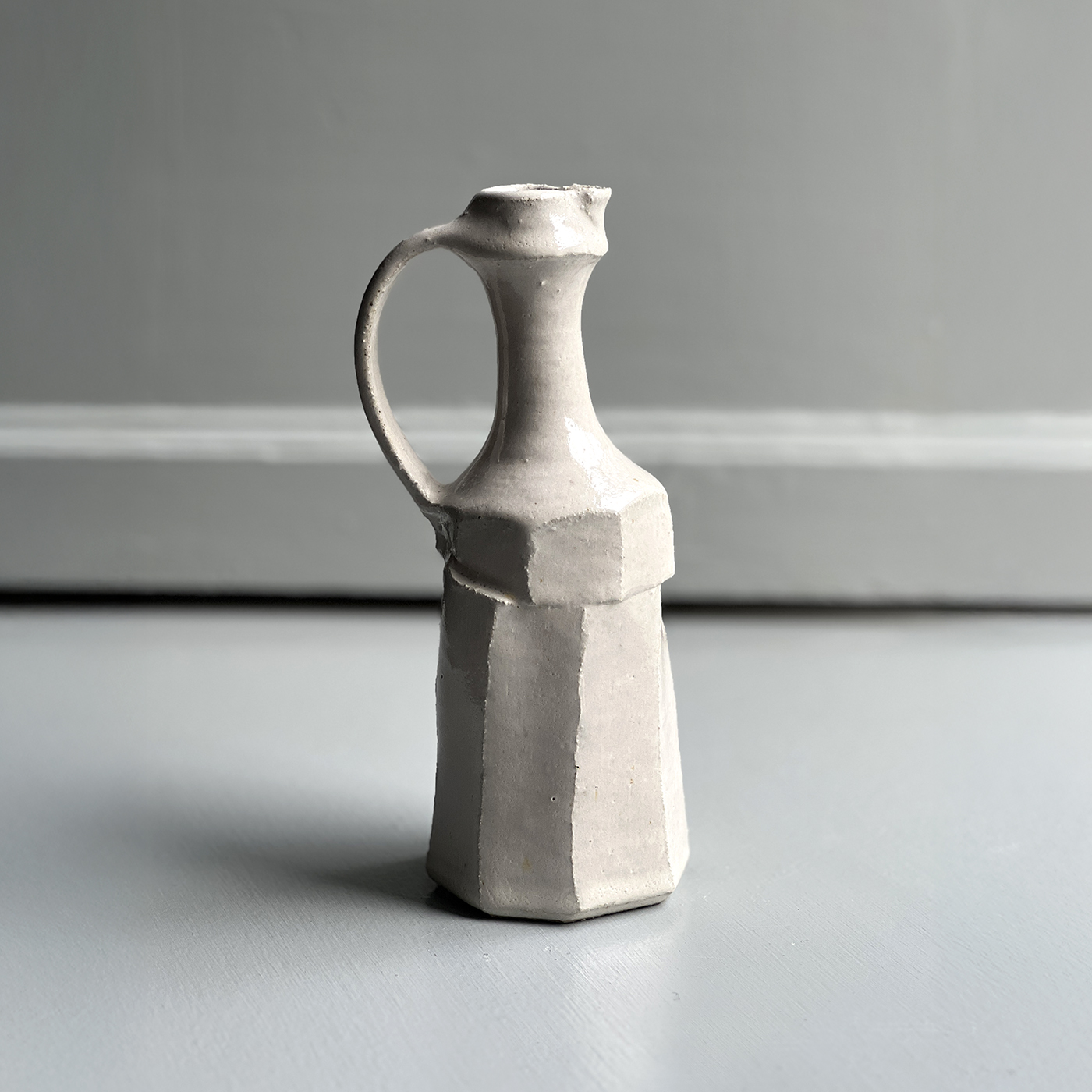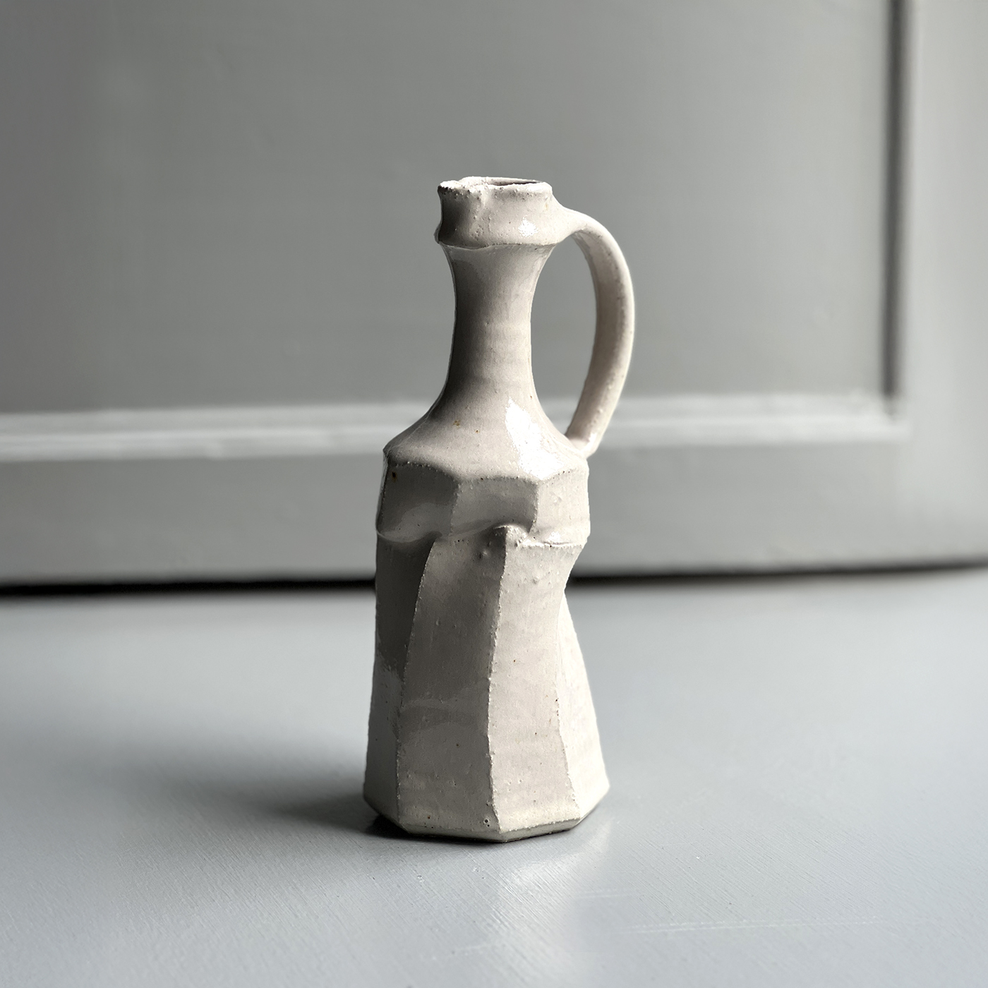 “My practice centres on using the potter’s wheel as a tool for sculptural exploration—faceting, cutting, and contorting forms to create distinctive pieces that retain visible traces of their making. This approach brings a sense of movement and raw energy to each object.