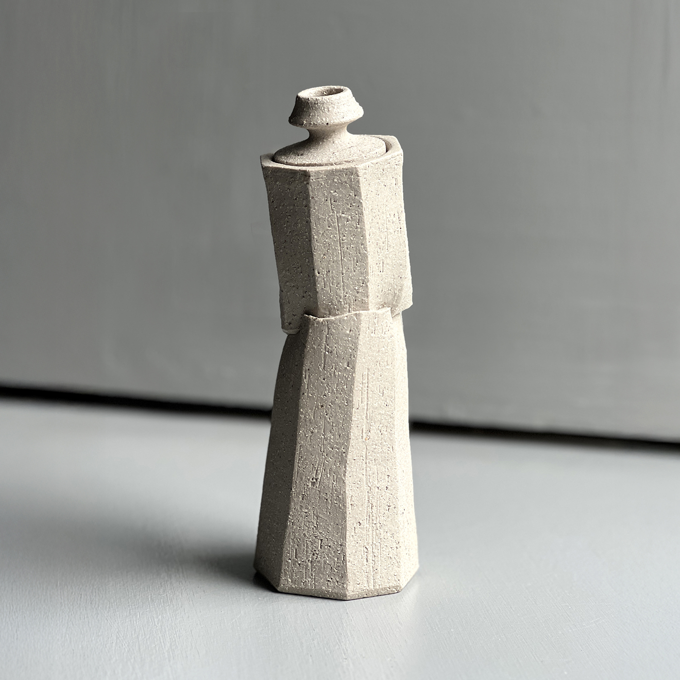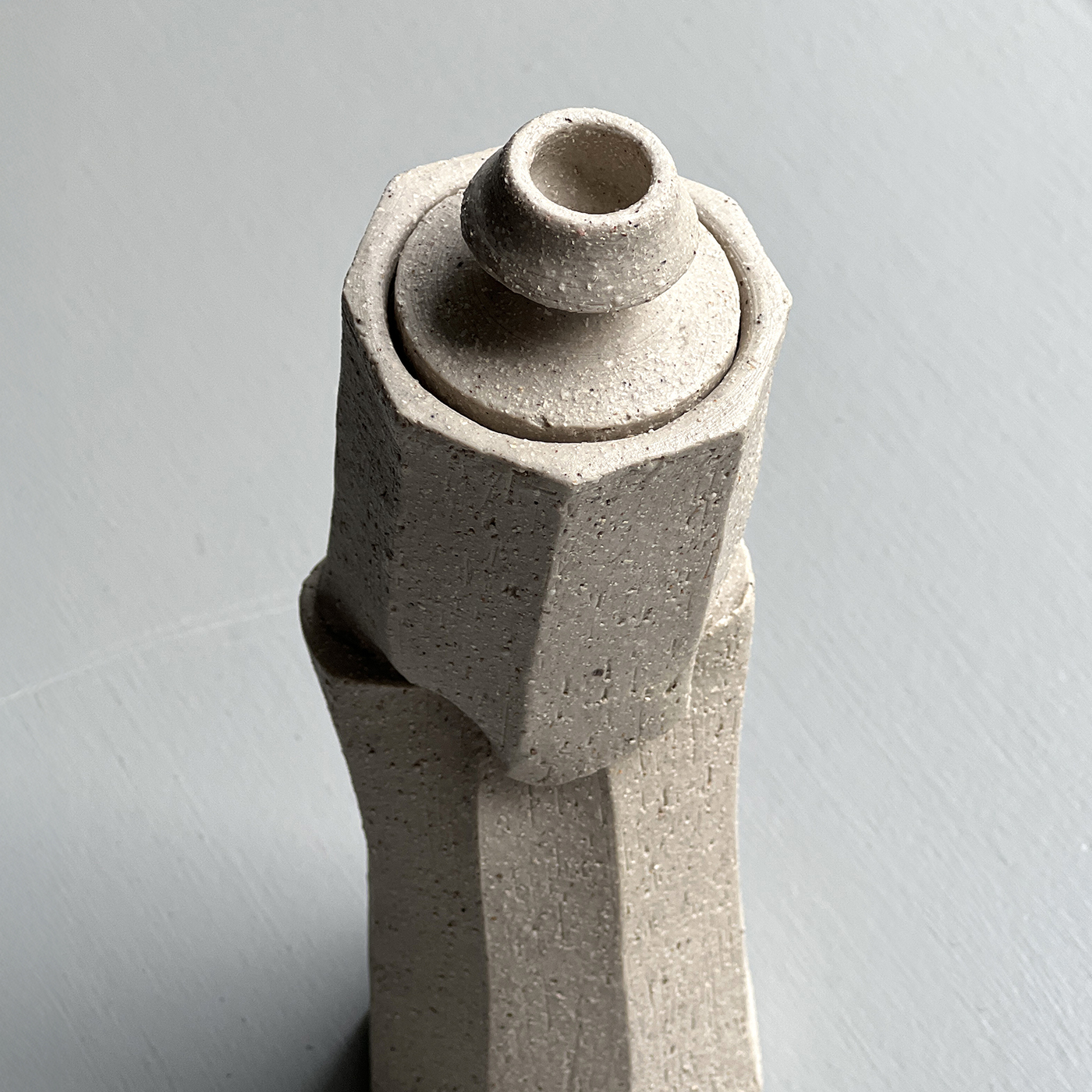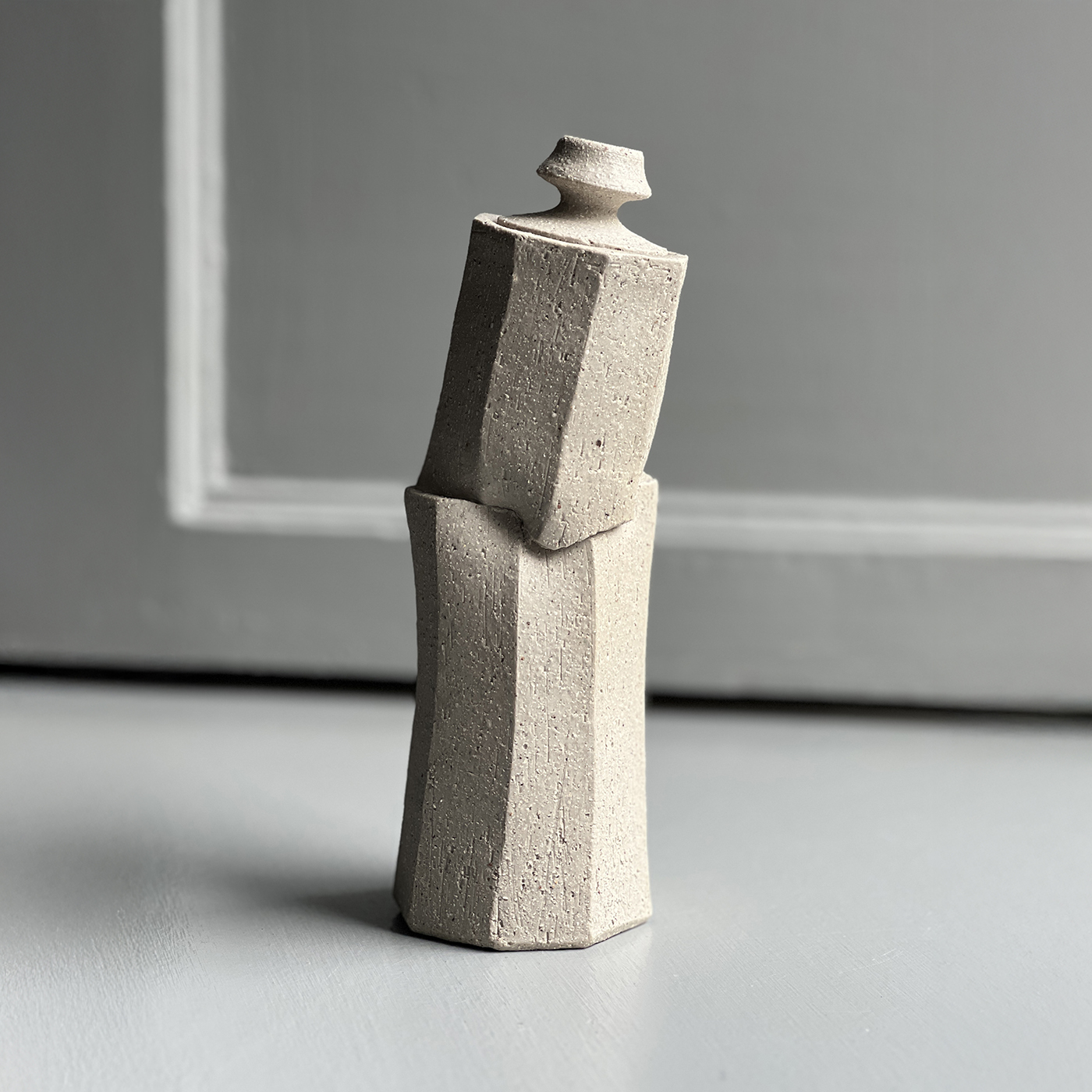 “My practice centres on using the potter’s wheel as a tool for sculptural exploration—faceting, cutting, and contorting forms to create distinctive pieces that retain visible traces of their making. This approach brings a sense of movement and raw energy to each object.