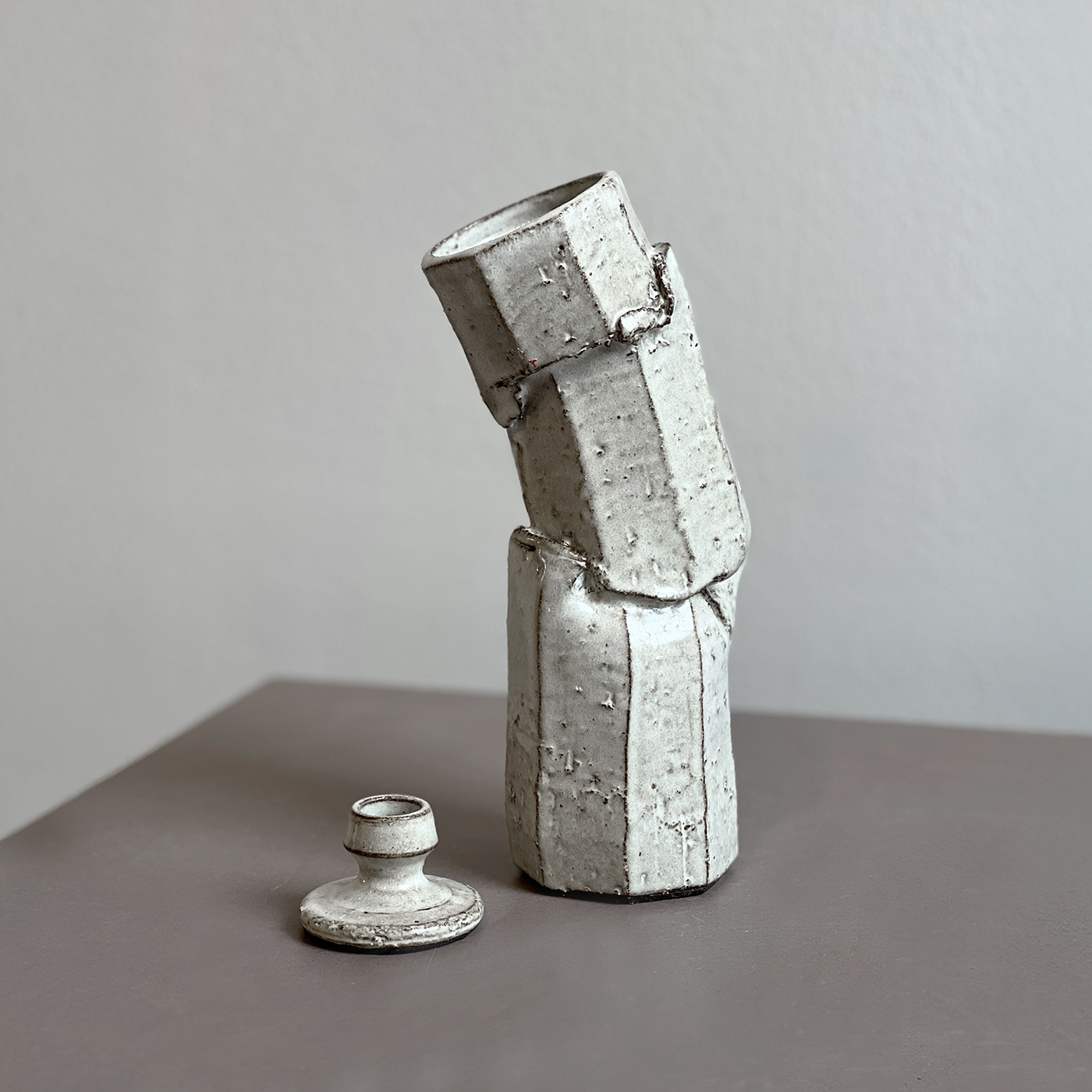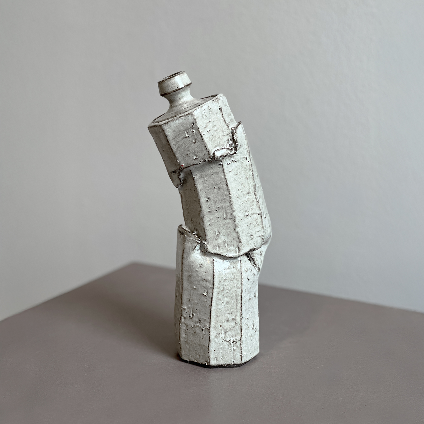 “My practice centres on using the potter’s wheel as a tool for sculptural exploration—faceting, cutting, and contorting forms to create distinctive pieces that retain visible traces of their making. This approach brings a sense of movement and raw energy to each object.