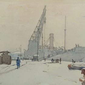 Robert Eadie was born in Glasgow in 1877 and studied at the Glasgow School of Art, as well as Munich and Paris. An elegant portraitists, book illustrator and rural and town landscape in oils and water-colours. He was also an engraver, and artist in black and white. His soon garnered attention and he was a regular exhibitor at the Royal Glasgow Institute of the Fine Arts and before 1914 also at the Paris Salon. Eadie also exhibited at the Royal Academy, London and the Royal Scottish Academy, Edinburgh. He was also a member of the Royal Scottish Society of Painters in Watercolour, where he also frequently exhibited. He was prominent in civic life and was elected president of Glasgow Art Club. As an illustrator of books he illustrated “The Face of Glasgow”, published in 1938 and and “The Face of Edinburgh”, published in 1938. More recently his paintings also preface “The University of Glasgow Library: Friendly Shelves”, 2016.