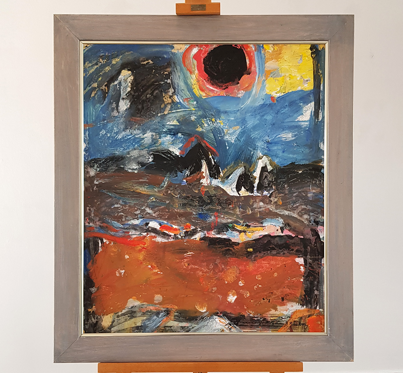 In this painting, James Robertson delivers a wild and uninhibited vision of one of Scotland’s most storied landscapes. Painted in gouache with sweeping gesture and bold intent, Glencoe breaks free from romanticised traditions to embrace an expressive, modern language of mark and mood. Robertson’s Glencoe is a place in motion, filled with the turbulence of weather, land, and memory, captured in slashes of pigment and surging forms. While the grandeur of the subject evokes the legacy of Scotland’s great landscape painters, from Horatio McCulloch and Alexander Nasmyth to the theatrical expanses of William McTaggart, Robertson’s approach is wholly contemporary. His palette is earthy and urgent; his brushwork charged with emotion and abstraction. Born in 1931, James Robertson is part of a vital post-war generation of Scottish painters who brought modernism and expressionism to the fore. His long tenure as a teacher at the Glasgow School of Art cemented his influence, and he became a pivotal figure in shaping the visual language of younger Scottish artists. Known for his rigour, intellect, and unflinching commitment to the act of painting, Robertson encouraged his students to approach landscape not as motif, but as subjective terrain, something to be wrestled with, responded to, and reinterpreted.