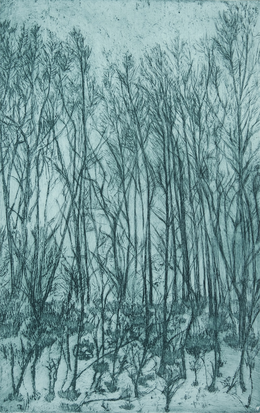 Kirstie Behrens is an award-winning artist and printmaker, based in Pittenweem in Fife. She graduated from Duncan of Jordanstone College of Art and Design in 2019 and in 2021 she won the Roy Wood Prize for Printmaking, the Art in Healthcare Award and the W Gordon Smith & Jay Gordon Smith Award from the Royal Scottish Academy. Behrens practice revolves around time-based projects where natural elements are actively incorporated as tools in her practice, creating marks which leave traces of evidence of the passage of time. Traditional etching is a printmaking technique that involves using acid to bite into a metal plate (usually copper, zinc, or steel) to create an image. Using a sharp etching needle or other pointed tool, Behrens then draws directly onto the surface of the plate, exposing the metal beneath the ground. The lines and marks will later be etched into the plate. Traditional etching allows for a wide range of mark-making and tonal effects, making it a versatile and expressive medium for artists. While the process can be time-consuming and requires careful handling of hazardous materials, it offers unique opportunities for artistic experimentation and exploration. Behrens will be the subject of a solo exhibition in 2025 alongside her family, who are all practicing artists