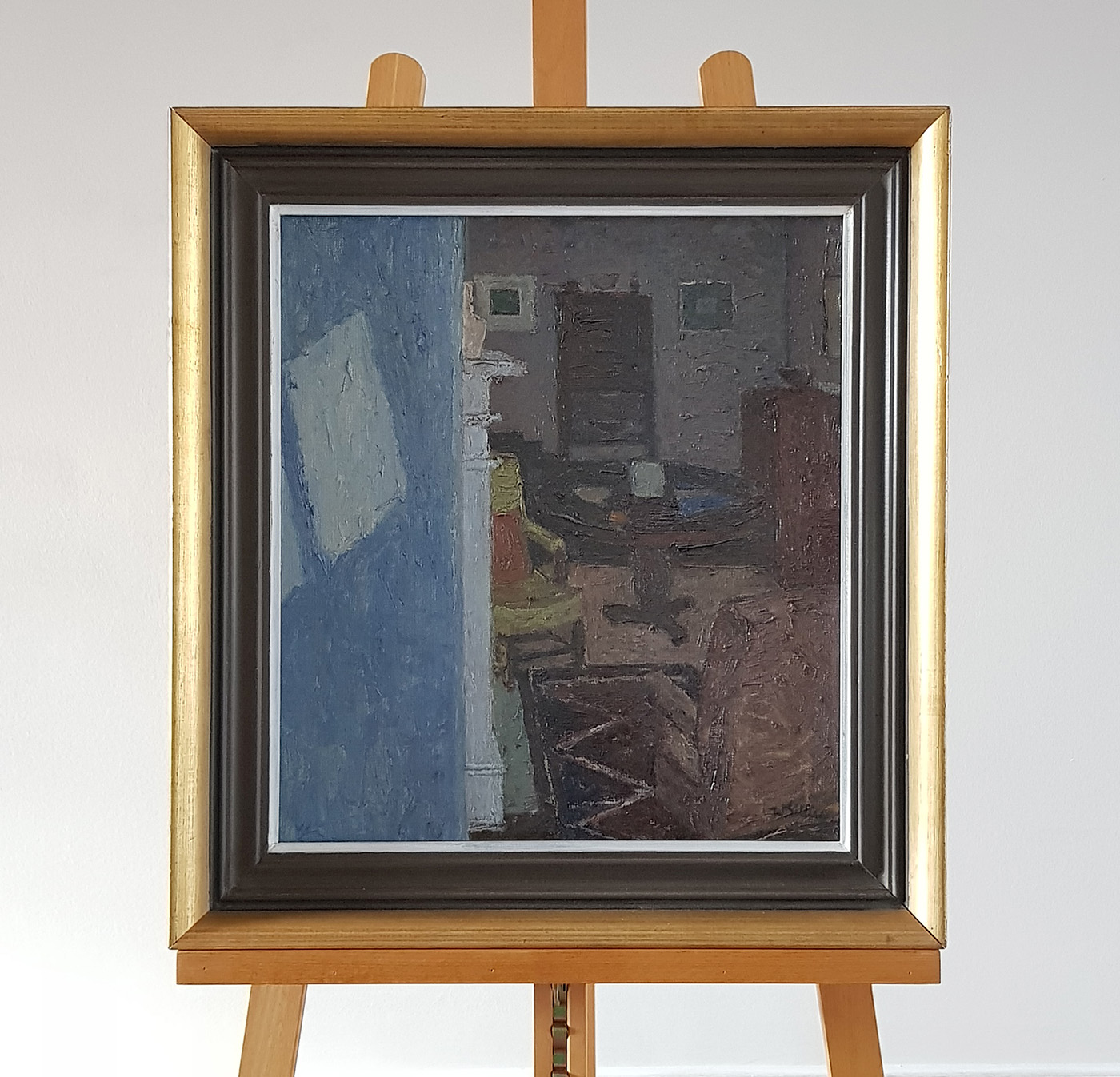 Interior Temple stands as a magnificent example of post-war Scottish painting, and a pivotal moment in the career of William Gillies, one of the most influential figures in 20th century Scottish art. Painted shortly after moving to the village of Temple in Midlothian, at the time of being fully elected to the Royal Scottish Academy, this work marks Gillies’s embrace of the domestic interior not just as subject, but as a space for compositional invention and introspection.