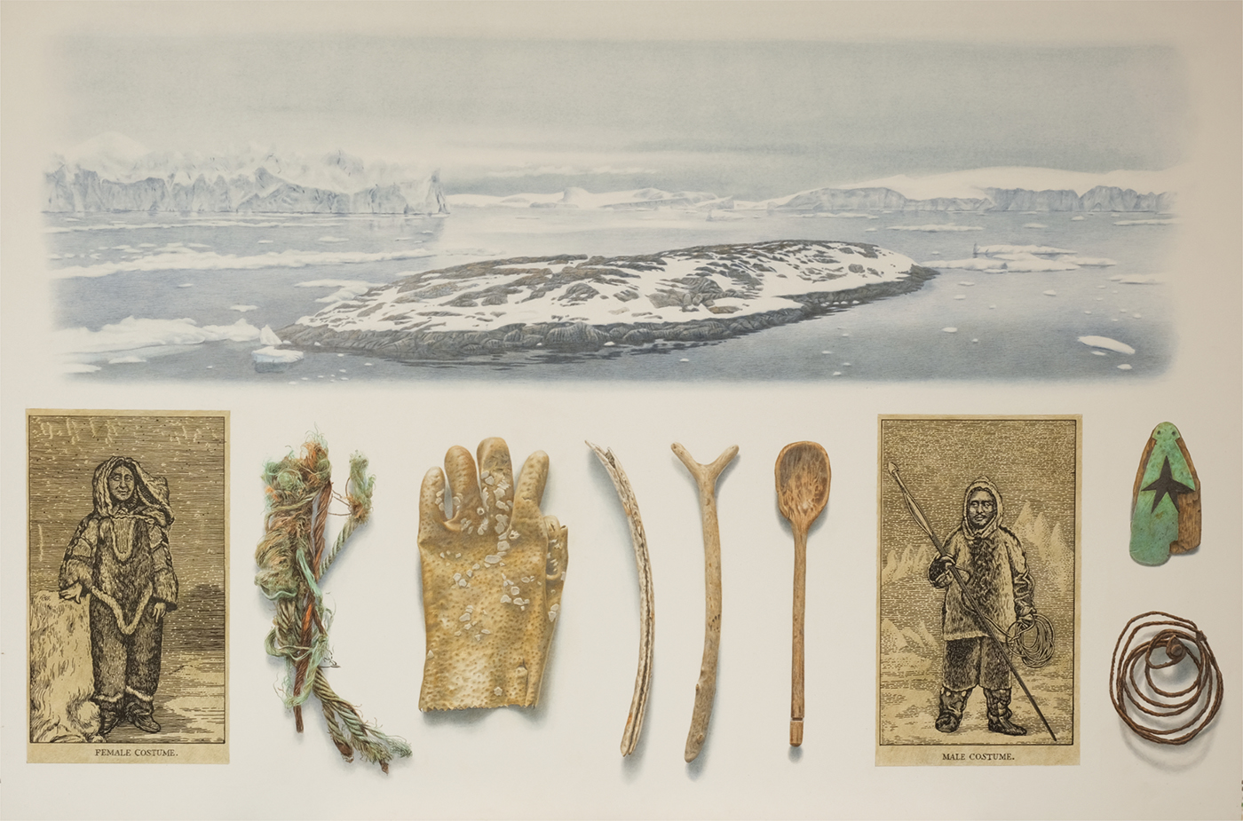 Behrens’s practice inhabits a fictional world called Naboland, a mythical place of snow and ice. For over forty years, the artist has examined this world through the lens of a real history of discovery, with the artist adopting the role as explorer to create an archive of drawings, paintings, prints and installations which record the found objects and landscapes of Naboland. 2025 will mark the 50th anniversary of Naboland.