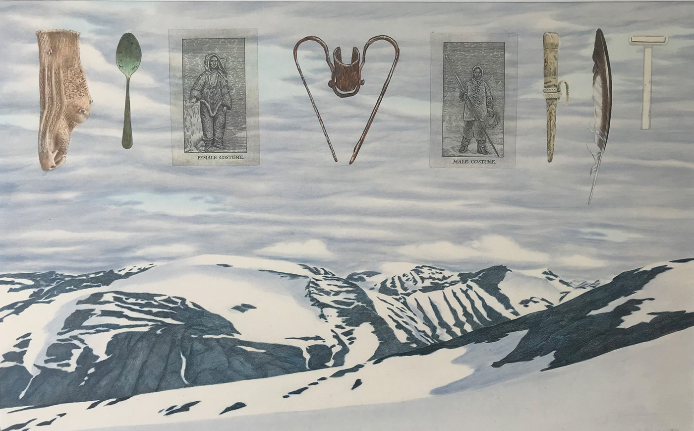 Behrens’s practice inhabits a fictional world called Naboland, a mythical place of snow and ice. For over forty years, the artist has examined this world through the lens of a real history of discovery, with the artist adopting the role as explorer to create an archive of drawings, paintings, prints and installations which record the found objects and landscapes of Naboland. 2025 will mark the 50th anniversary of Naboland.