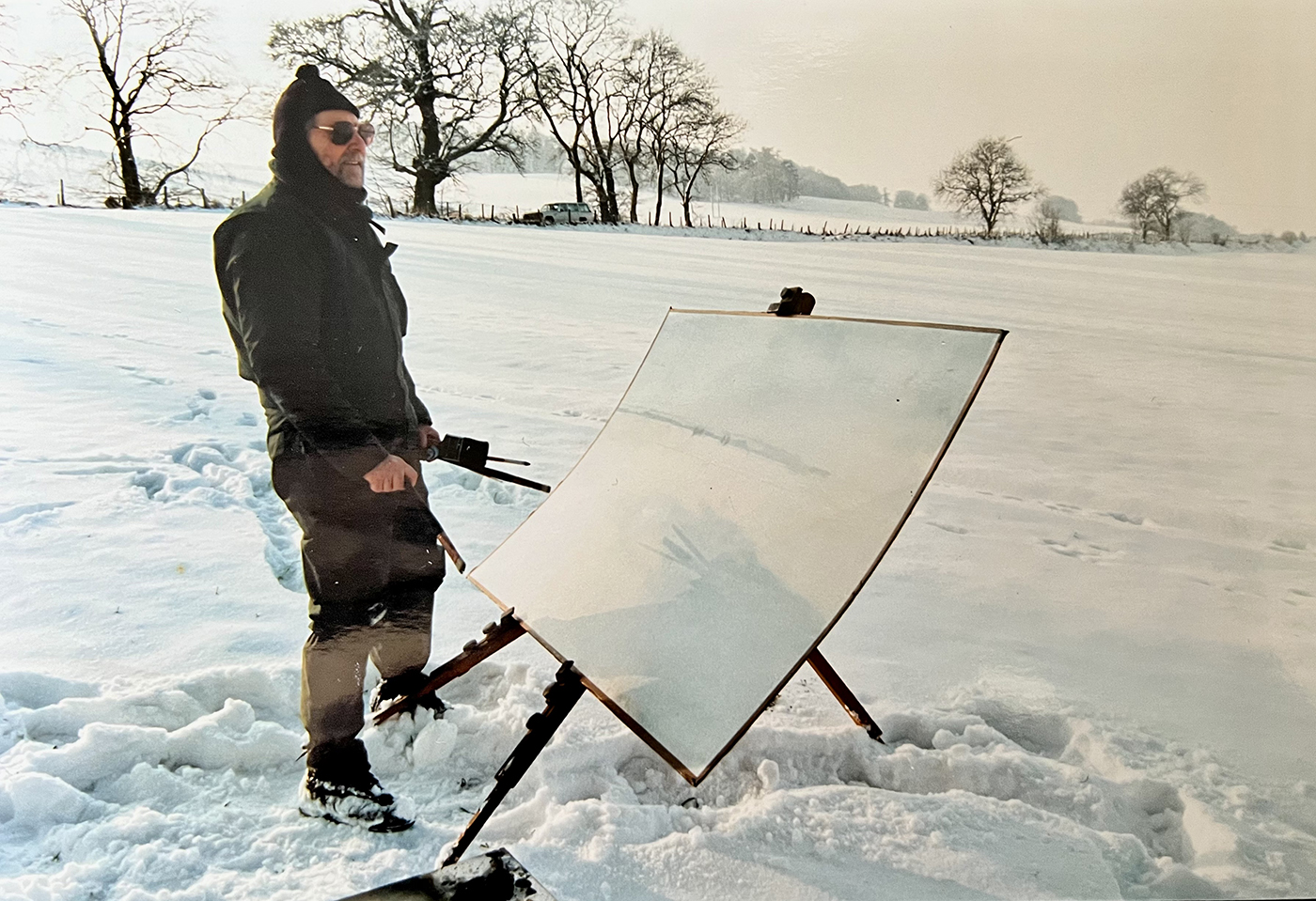 James Morrison painting in winter, Angus, c.1999