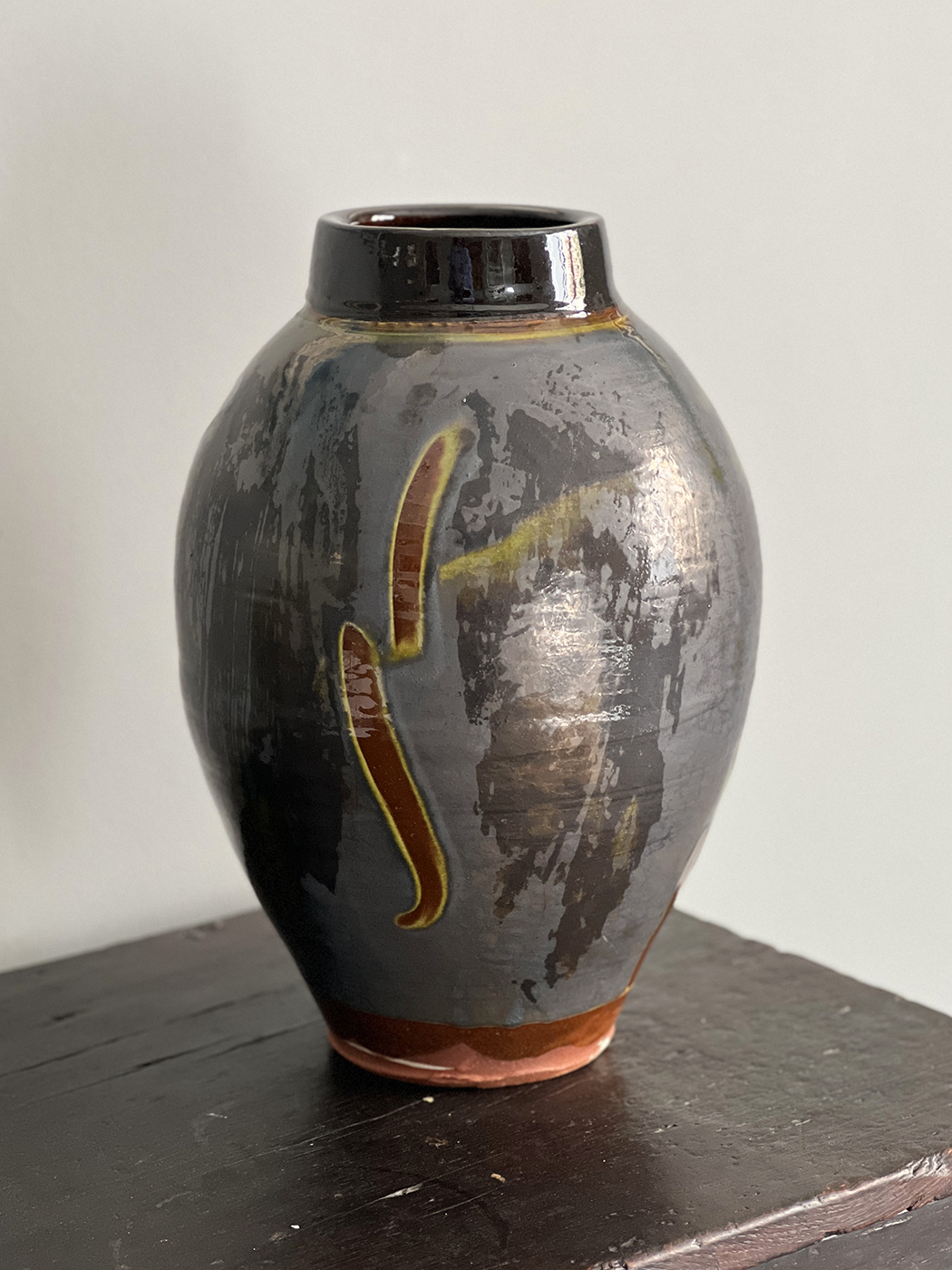 Large Black Jar Yellow Top and Slip Trail, 2026