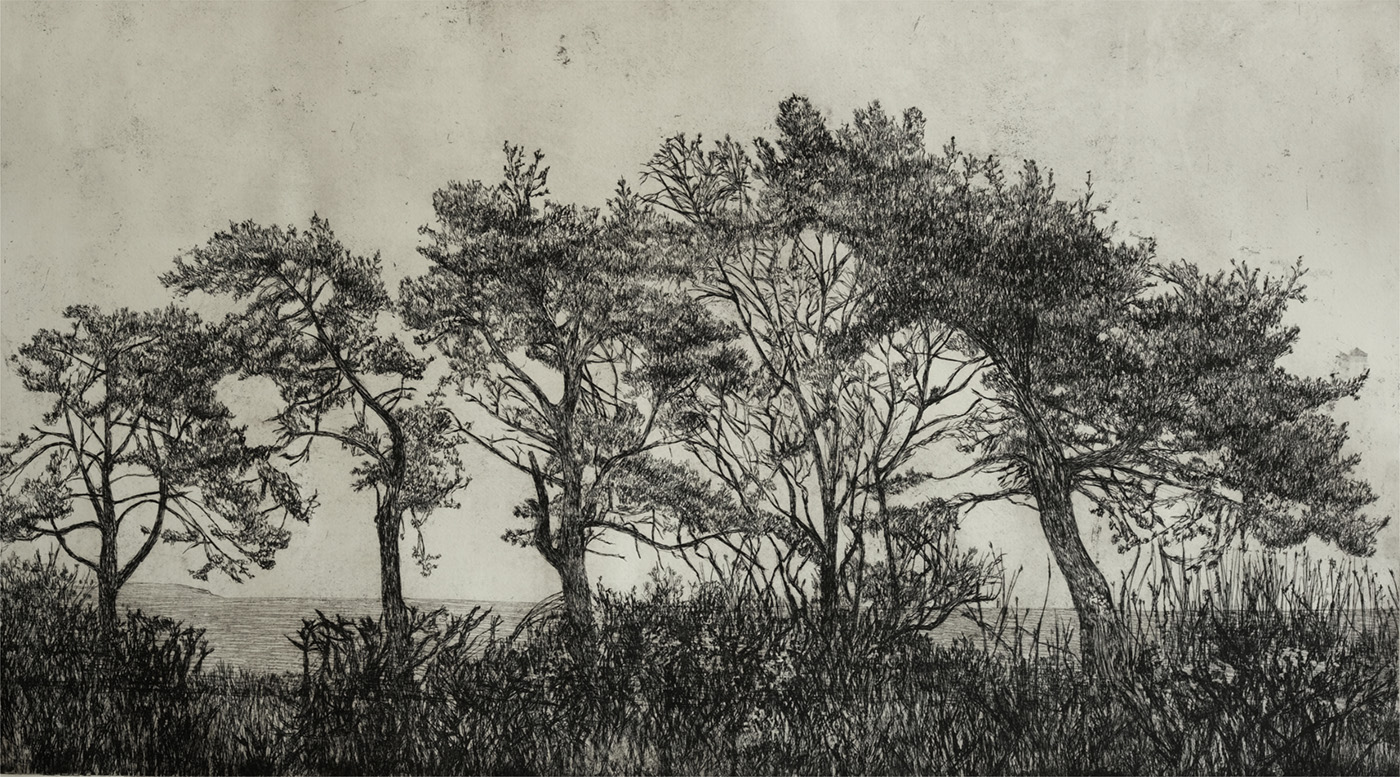 Kirstie Behrens is an award-winning artist and printmaker, based in Pittenweem in Fife. She graduated from Duncan of Jordanstone College of Art and Design in 2019 and in 2021 she won the Roy Wood Prize for Printmaking, the Art in Healthcare Award and the W Gordon Smith & Jay Gordon Smith Award from the Royal Scottish Academy. Behrens practice revolves around time-based projects where natural elements are actively incorporated as tools in her practice, creating marks which leave traces of evidence of the passage of time. Traditional etching is a printmaking technique that involves using acid to bite into a metal plate (usually copper, zinc, or steel) to create an image. Using a sharp etching needle or other pointed tool, Behrens then draws directly onto the surface of the plate, exposing the metal beneath the ground. The lines and marks will later be etched into the plate. Traditional etching allows for a wide range of mark-making and tonal effects, making it a versatile and expressive medium for artists. While the process can be time-consuming and requires careful handling of hazardous materials, it offers unique opportunities for artistic experimentation and exploration. Behrens will be the subject of a solo exhibition in 2025 alongside her family, who are all practicing artists