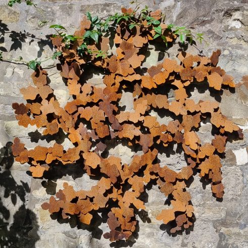 Andrea’s sculptures are hand-made from Corten steel; a weatherproof steel that forms a protective layer which stops further corrosion. They therefore have an unlimited life span and do not stain. Andrea fabricates all her sculptures herself. The patterns are first drawn onto sheet metal then hand-cut, assembled like a 3D puzzle and finally welded together. Andrea has worked on several large scale public commissions including Culzean Castle and, most recently, a sculpture commission titled ‘The Chlorophylles’ at the FANK Arts & Heritage site in Lettermore Forest on the Isle of Mull; celebrating the community effort bringing this site back to life.
