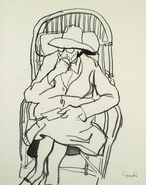 Alexander Goudie is widely regarded as one of Scotland’s finest figurative painters. He enrolled in the Glasgow School of Art at just 17, and though he was reportedly boisterous and opinionated, he was focussed on developing traditional skills in painting. He was inspired by Manet, Velazquez and Van Dyke, and along with his peers and contemporaries, David Donaldson, Jimmy Robertson, John Cunningham, Duncan Shanks and John Byrne was trained to understand the alchemy of paint. His son, painter and broadcaster Lachlan Goudie explains: