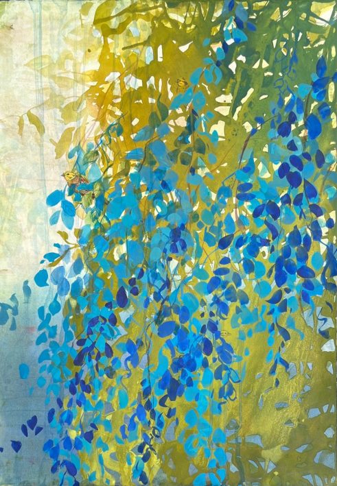 Claire exhibited at The Scottish Gallery in April 2018, exploring the idea of A Wilder Place. In July 2020 Claire presented an exhibition Into the Wild, featuring works created in the Arctic Circle and rewilding centres in Scotland. In March 2022 Claire’s exhibition The Garden, opened in The Gallery. The exhibition explored her immediate surroundings in Perth from a collection of borrowed gardens. Claire carefully and joyfully captured the visitors: the birds, the squirrels, the badger, and for the first time she brought the flora to the foreground while a butterfly or a tiny snail might be found in the detail. This close-up of the familiar natural world, so easily overlooked, has expanded her practice. Her work has a delicate, oriental sensibility, suiting longer formats, and employing kintsugi techniques, adding to their sense of fragility.