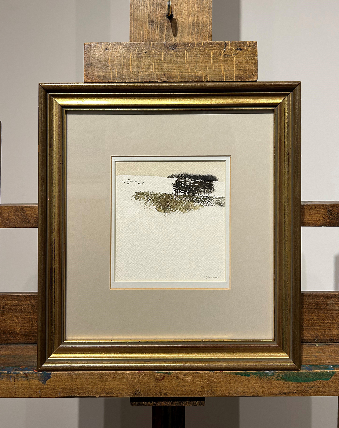 There is no shortage of subjects within a few miles of Crawford’s home in Arbroath. He is attracted to the marchlands where sea meets land, where low buildings are scoured by wind and sand, where a lighthouse gives succour to a seafarer’s eye, where the chance order of a row of seagulls or reflection on a cottage window makes us pause, think and wonder. He paints the wilderness of the North Sea, lent significance by the fisherman’s blood that runs in his veins.