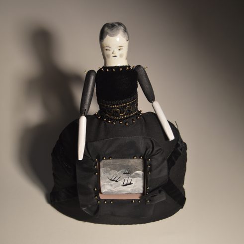 Rachel Larkins is a designer maker whose practice has focussed on creating jewellery with a strong sense of narrative and a nod to the tradition of miniatures. Larkins works primarily in resin, brass and wood, often encapsulating imaginary scenes and figures which are hand modelled and painted. Based in the village of Sopley, Larkins’s influences range from the surrounding rural landscape and seasonal folklore to magical realism in literature and painting.