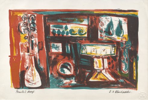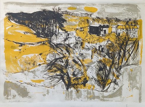 Elizabeth Blackadder was born in Falkirk in 1931. She studied at Edinburgh College of Art from 1949 until 1954 under Robert Henderson Blyth and William Gillies inter alia and enjoyed travelling scholarships to southern Europe and Italy. In 1956 she married artist and fellow Scottish Gallery exhibitor John Houston and began teaching in Edinburgh. One of Scotland’s greatest artists, she also enjoys recognition and success in London. Elizabeth is perhaps best known for her detailed yet lyrical watercolours of flowers, ‘table-top’ compositions using Oriental objects and her beloved cats. Trips to Japan and Venice and a greater emphasis on oil can be seen in landscape and townscape pieces as well as important still life series using decorated tins and boxes arranged with exotic fish, fruit and vegetables. In 2001, she was appointed Her Majesty’s Painter and Limner in Scotland. Elizabeth was also an inspired and skilful maker of original prints. We have oils, watercolours and original etchings in stock.