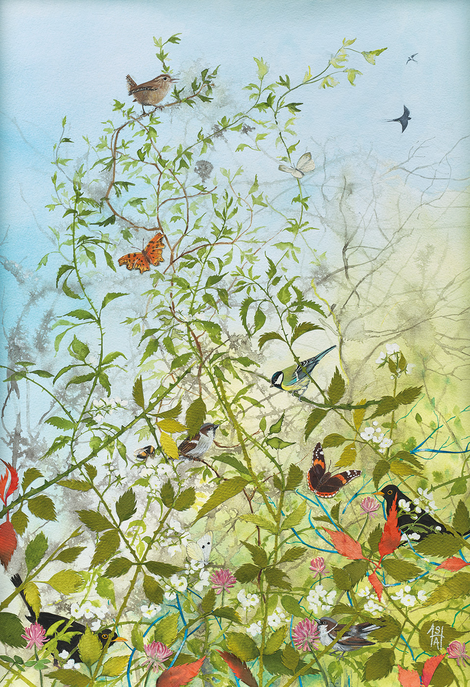 Sheila Anderson-Hardy studied at The Glasgow School of Art in the late 70s under Alexandra Gardener and James Cosgrove. She is now a full time painter based in the Scottish Borders. She combines Sumi-e ink washes, watercolour and collage to depicts landscape, verges and hedgerows and her encounters with the wildlife that inhabit these spaces. Her work is densely layers and delicately drawn. As well as several successful solo and group exhibitions her work is regularly selected for prestigious national open exhibitions. She was elected as a member of the Royal Scottish Society of Painters in Watercolour in 2024.