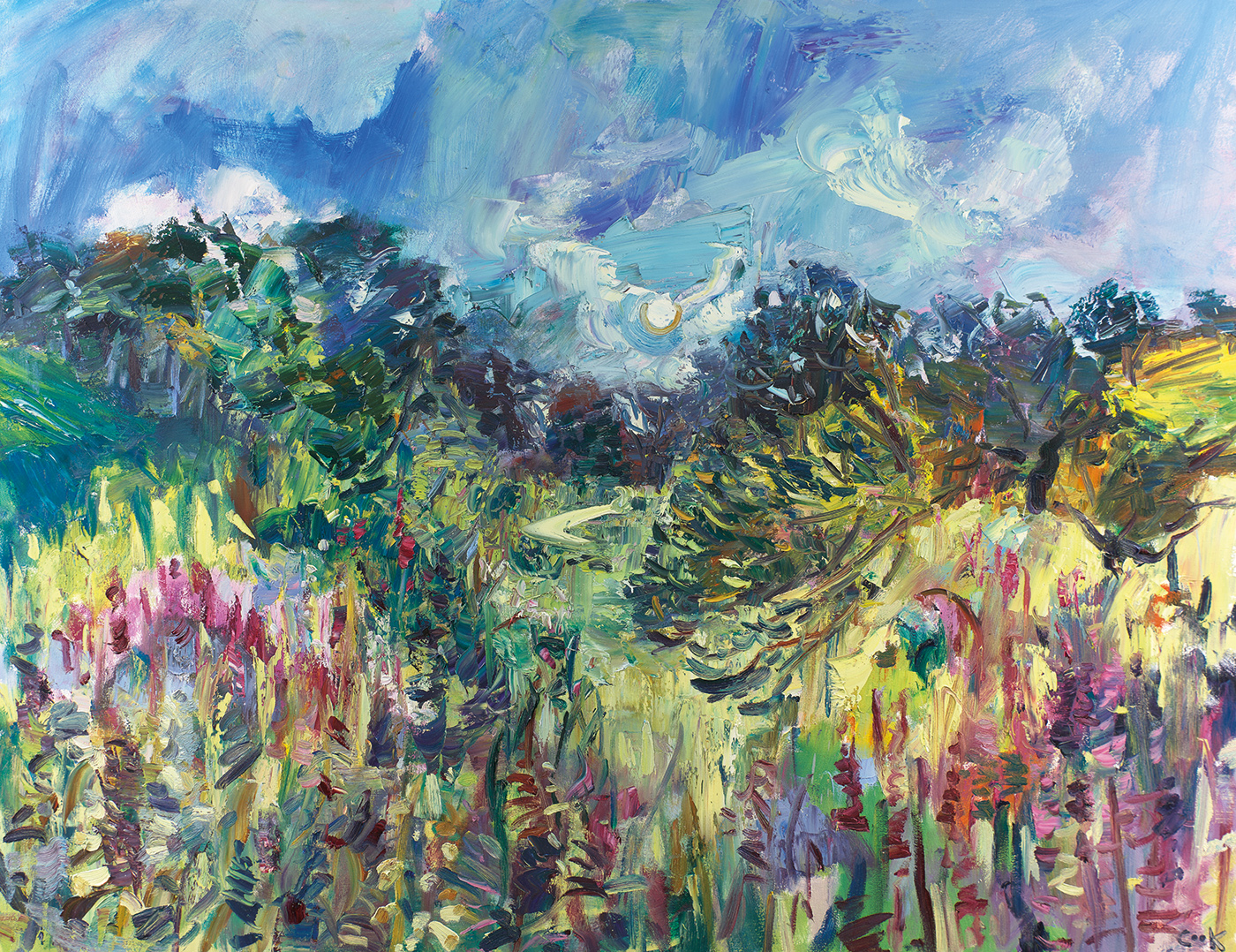 In the 1990s he was already visiting Seagreens (his current home) and staying at a cottage at Benholm, two miles to the North also frequented by Alberto Morocco and Ian Eadie. Cook travelled regularly in these years to Turkey, the Balearics and significantly, at the invitation of the Everard Reed Gallery, to Southern Africa for three months in 1997. He was able to secure the tenancy at Seagreens shortly after his return and eventually bought it in 2004. This sense of belonging is now deeply embedded; he can see the seasons change and paint the whole calendar; the daffodils of Spring, wild flowers of Summer, the Autumn skies and bleak drama of Winter are all on show: immediate, raw and compelling.