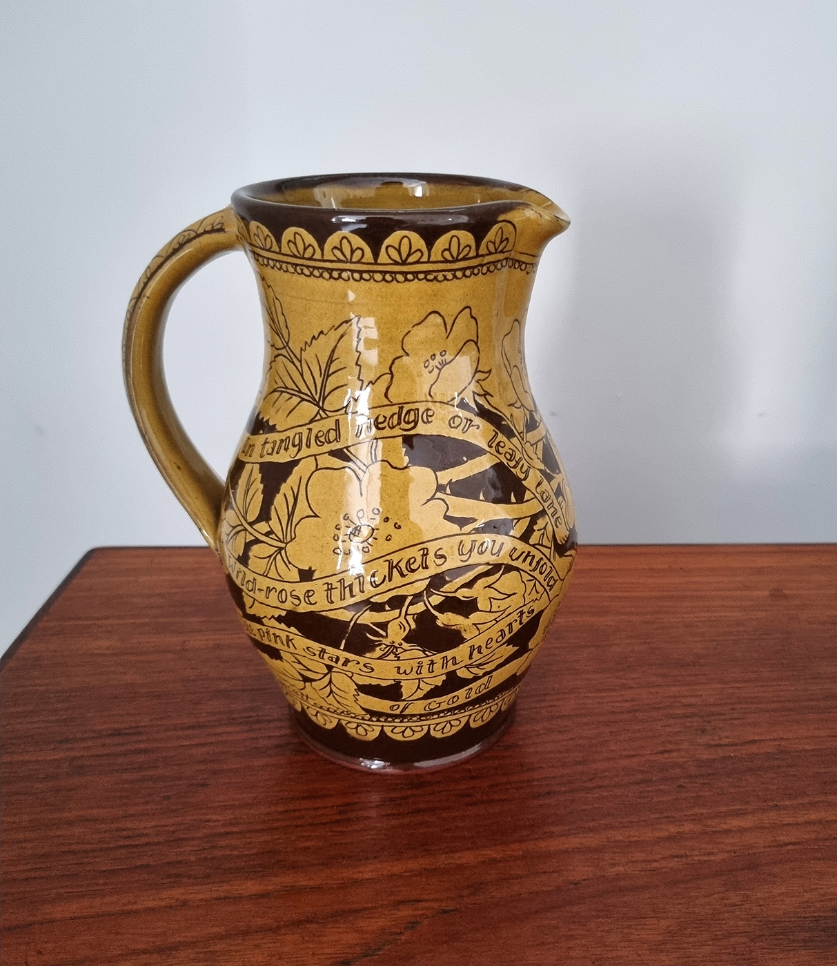Having dipped in and out of pottery for a number of years, she is now focusing on making earthenware, decorating with slip and using the Sgraffito technique. She is collaborating with potters at The Winchcombe Pottery, in Gloucestershire.
