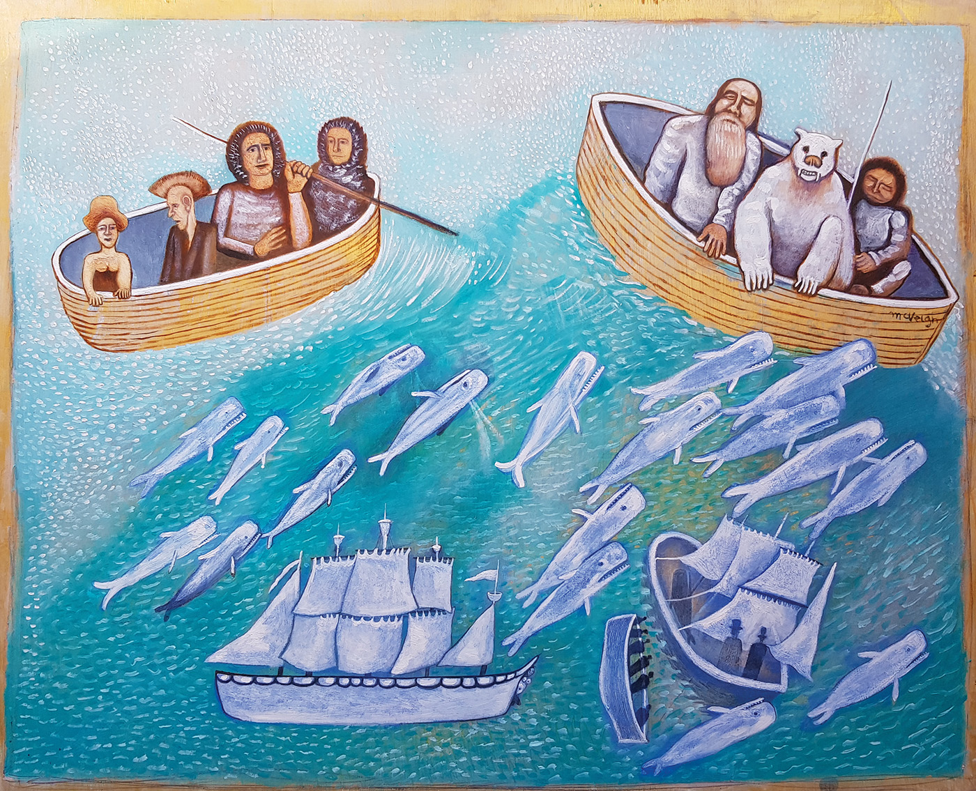 Since moving to Edinburgh in 1982 McVeigh has become a familiar figure seen regularly working in the city and until recently, had a stall on Rose Street selling his ‘lizard’ prints. ‘Lizard’ is his spelling of ‘laser’– colour copies of his original works, for sale at an affordable price. Life as a street artist has brought a certain amount of unwanted celebrity status, especially in recent years, becoming a cult figure sought out by the city’s stag and hen parties, eventually having to limit tourists to ‘one photo only’. His works are held in both public and private collections including town halls, pubs, fishmongers and a number of municipal and national institutions.