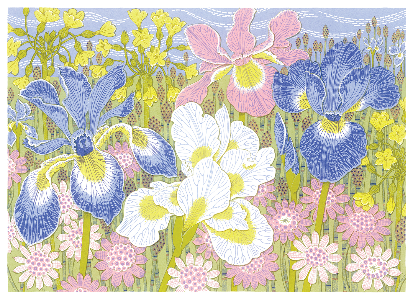Created for the RHS Chelsea Flower Show, The May Garden was specially commissioned for the Down’s Syndrome Scotland Garden, designed by Nick Burton and Duncan Hall. The garden was conceived to challenge prejudice and celebrate the qualities often associated with people with Down’s syndrome – including joy, empathy, mischief and compassion. Angie Lewin’s print reflects the spirit of the garden’s naturalistic planting and features on the cover of the official planting guide. The project brought together designers, horticulturists and individuals with Down’s syndrome in a collaborative and celebratory endeavour.