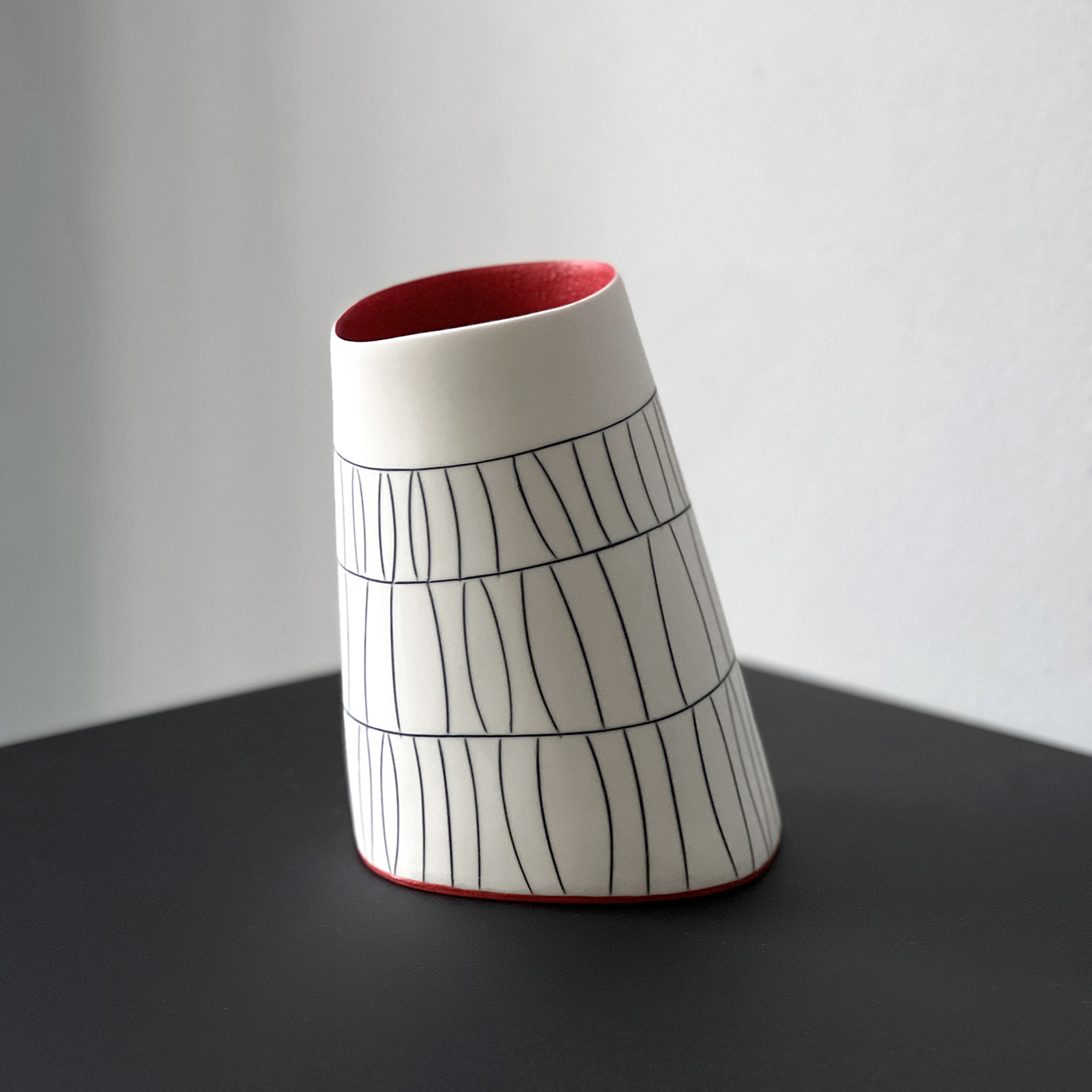 Tilted Squared Vase with Deep Ruby Interior, 2024